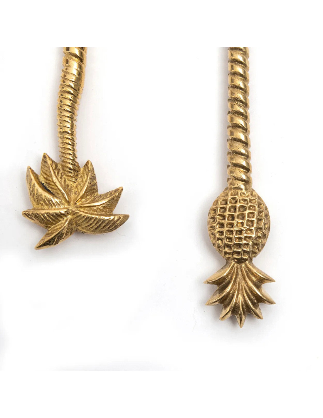 Notre toute première collection de couverts est là et elle est jolie et brillante ! Ces fourchettes et cuillères sont un luxe pur, fabriqués en laiton massif avec des détails incroyables. Vos invités seront impressionnés par le poids et la qualité de ces indispensables en laiton réel. Toutes les pièces sont décorées d'un ananas ou d'un palmier - cela ne peut pas être plus tropical que cela.