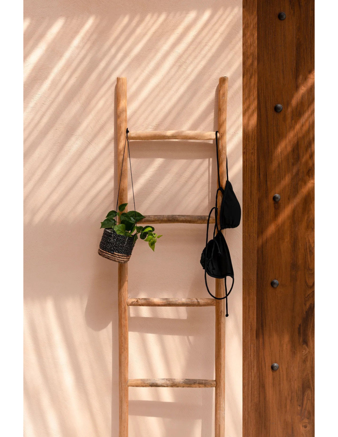 Notre échelle bohème en teck naturel et massif est un superbe accessoire pour suspendre vos serviettes et couvertures. Une pièce décorative qui apporte un caractère naturel à votre salle de bain, salon ou tout espace extérieur. Accrochez-la!