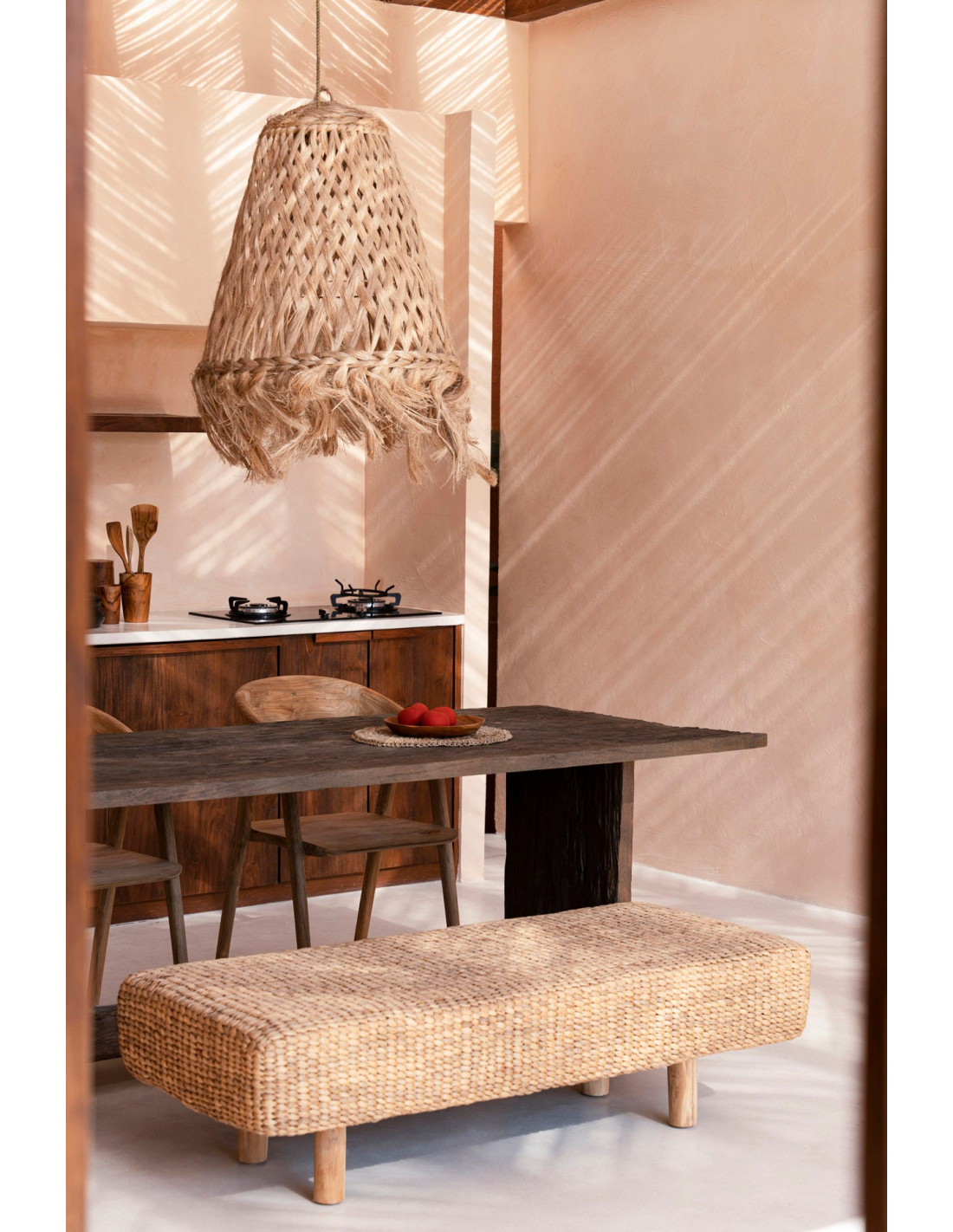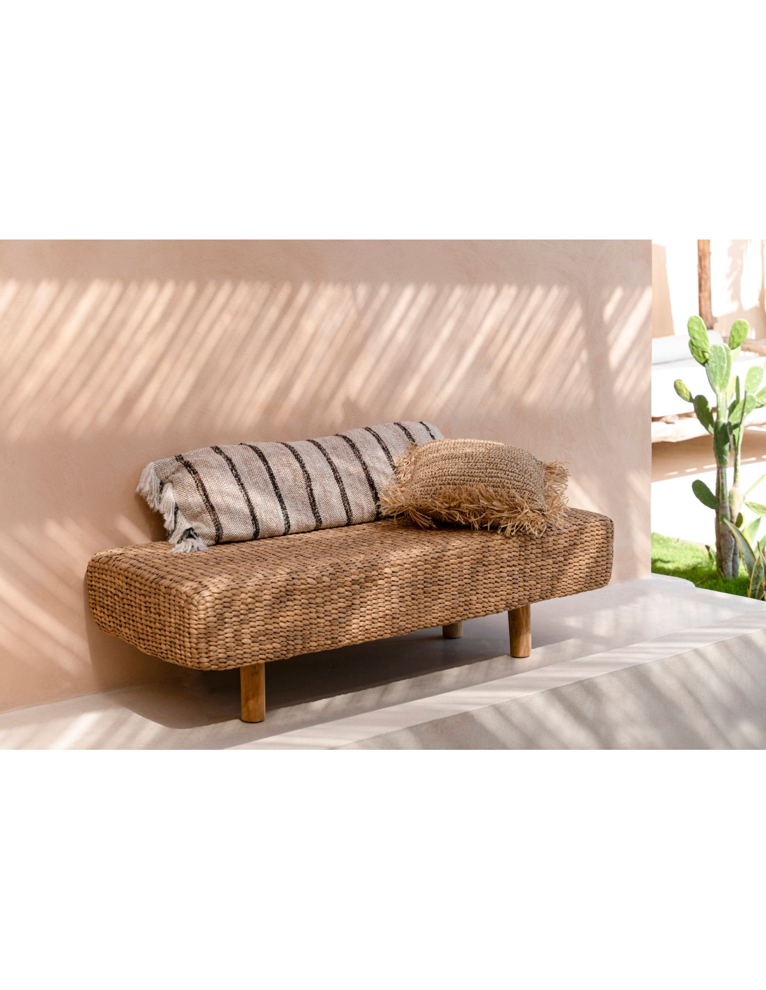 Rencontrez notre Banc en Jacinthe d'Eau: une solution de sièges durable qui apporte une beauté naturelle à votre espace. Fabriqué à partir de fibres de jacinthe d'eau respectueuses de l'environnement tissées dans une belle texture, ce banc offre à la fois style et durabilité dans un seul et même emballage chic. Utilisez ce banc devant votre lit, dans votre salon ou même dans une zone extérieure couverte. Choisissez l'élégance, choisissez l'éco-responsabilité, choisissez le Banc en Jacinthe d'Eau!