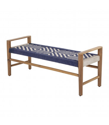 Le Banc Salme de Creative Collection est un banc solide et beau en bois de teck. Le banc a un style bohème avec un incroyable motif bleu au niveau de l'assise.