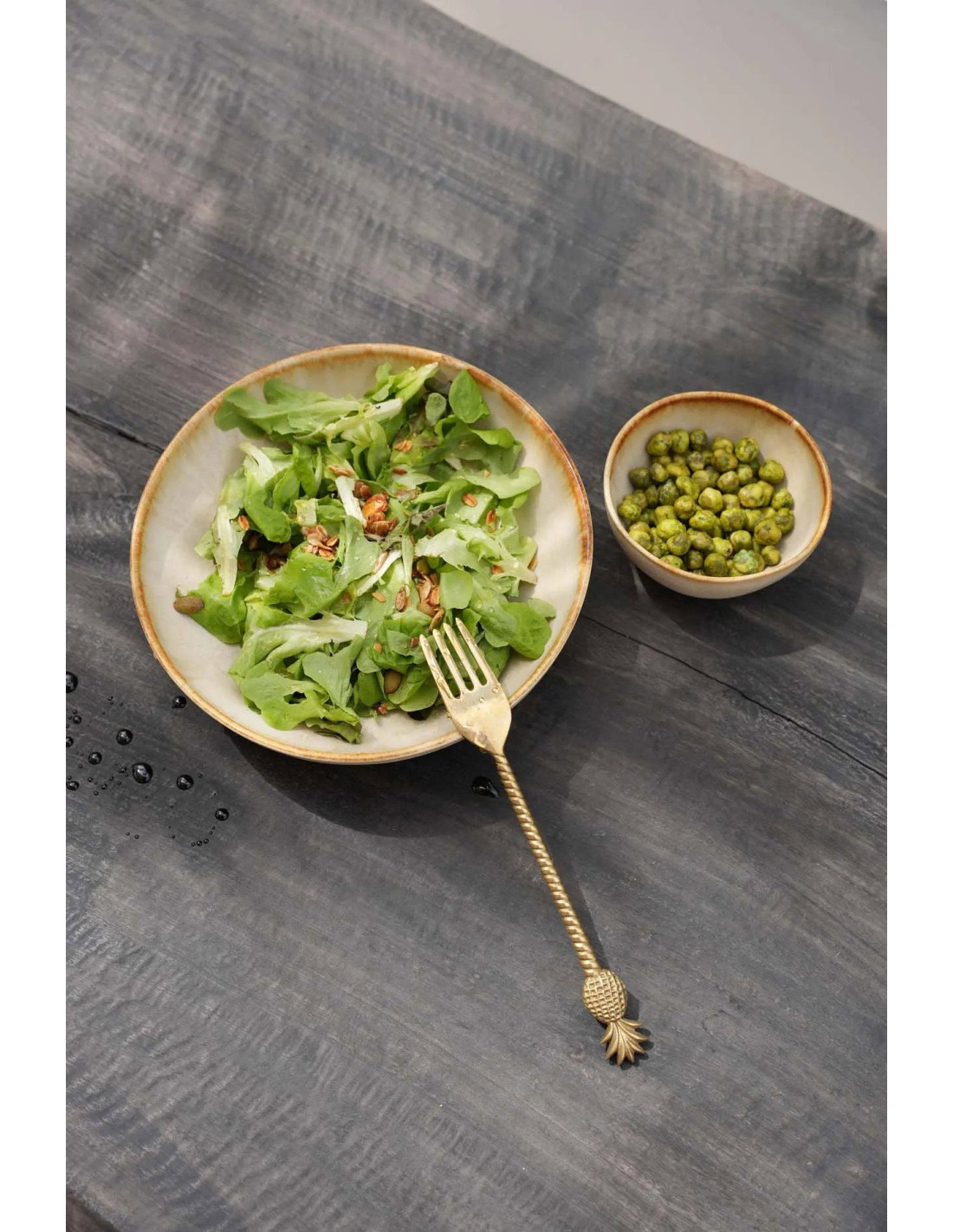 Lors de brunch, déjeuner ou dîner, rien n'est plus agréable qu'une table joliment dressée avec de la vaisselle magnifiquement choisie. Nous adorons le design unique et les nuances de couleur de notre céramique portugaise. Un incontournable pour toutes les occasions. Cette édition blanche avec une touche d'or est parfaite pour toute occasion, du dîner chic au pique-nique estival. Ce service artisanal peut varier en couleur en raison de sa méthode de fabrication.