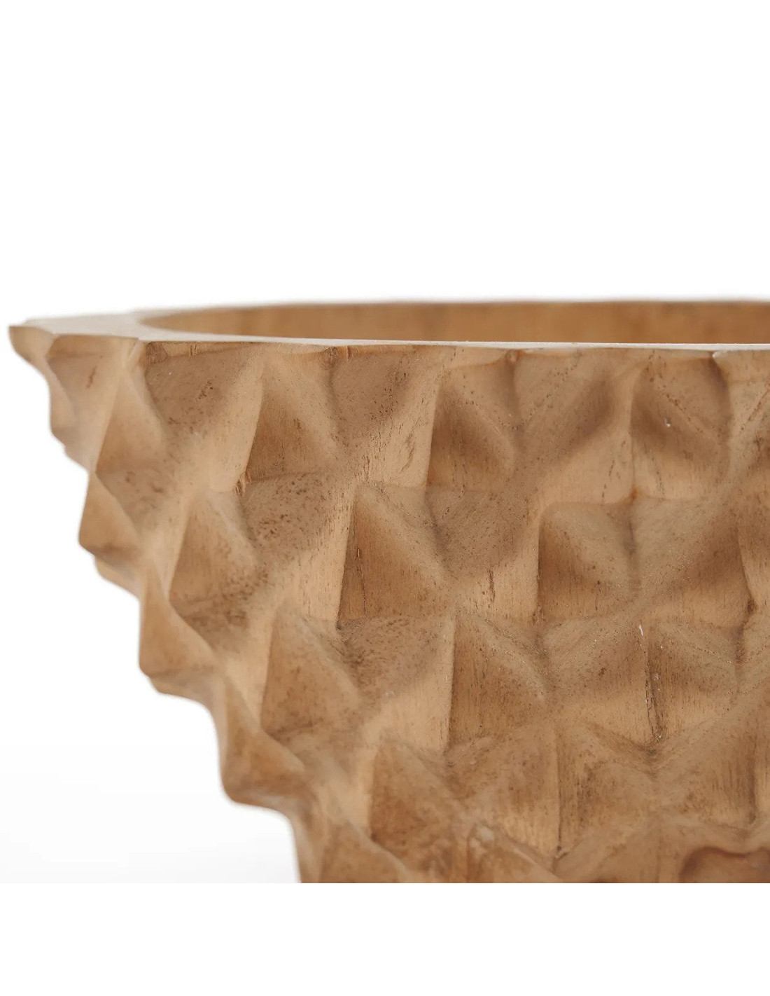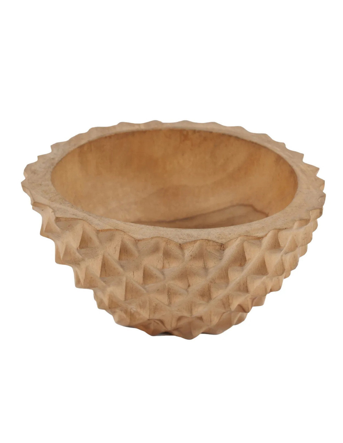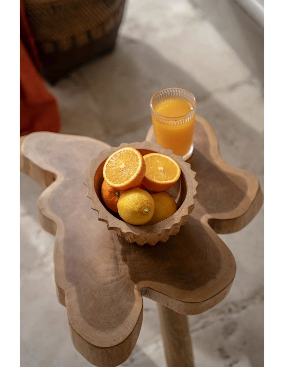 Le design de ce bol s’inspire du fruit durian, souvent appelé le « roi des fruits ». L’extérieur présente une texture semblable à la coque épineuse du durian. Utilisez-le comme pièce décorative centrale ou comme plat de service pour fruits, noix ou encas. Les tons riches du teck soulignent sa durabilité et son intemporalité, en faisant un ajout précieux à toute maison ou collection.