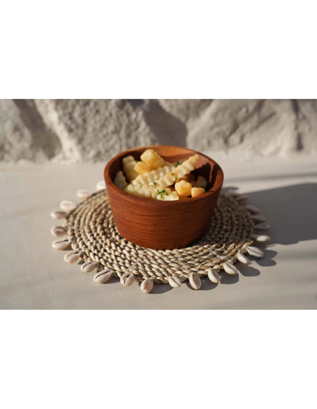 Préparez-vous pour les soirées cinéma, les fêtes ou tout simplement pour vous détendre avec votre en-cas préféré dans le Bol Popcorn. De taille parfaite pour le pop-corn, les chips ou tout autre en-cas, il est conçu pour rendre votre moment de grignotage plus élégant. Les motifs uniques du grain du teck rendent chaque bol unique, apportant une touche de beauté naturelle à votre intérieur.