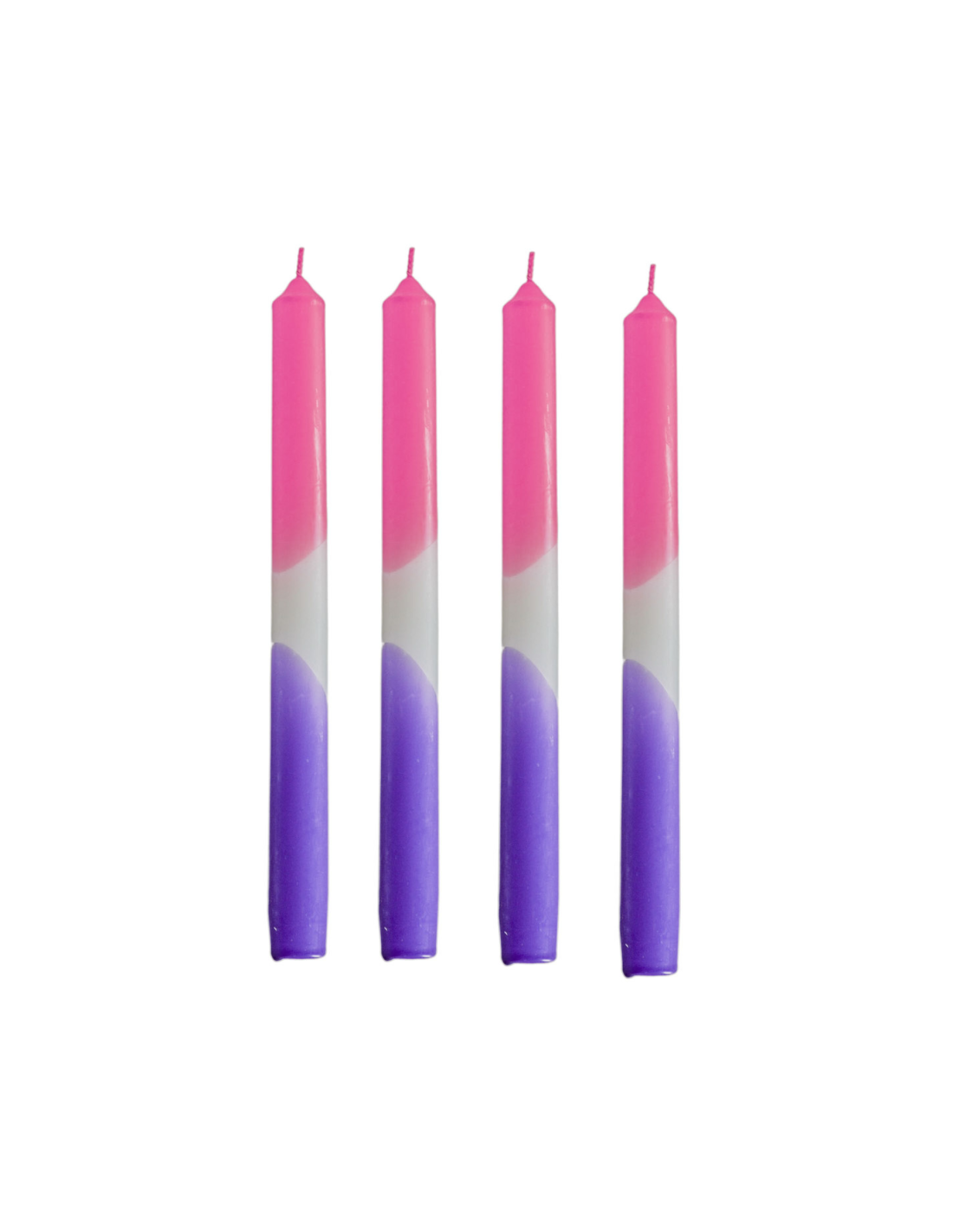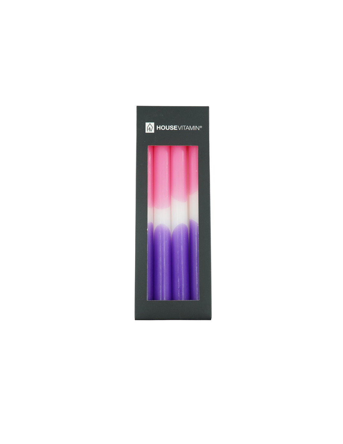 Bougies coniques Dip Dye - Rose/Blanc/Violet - S4