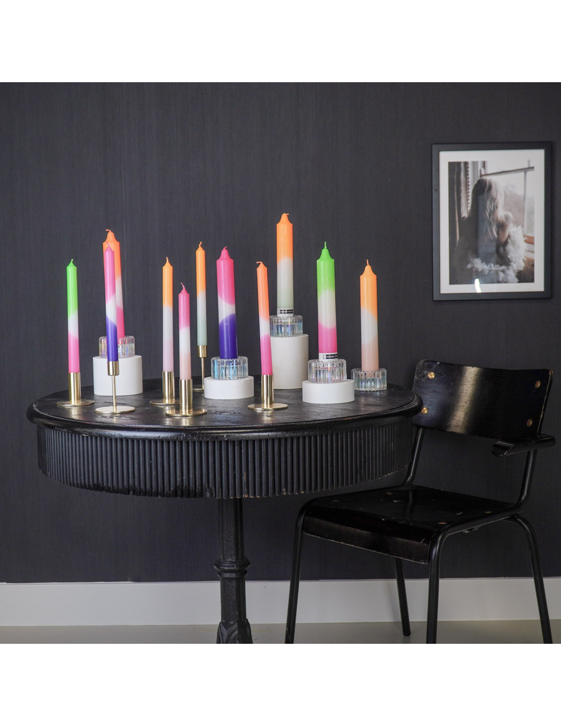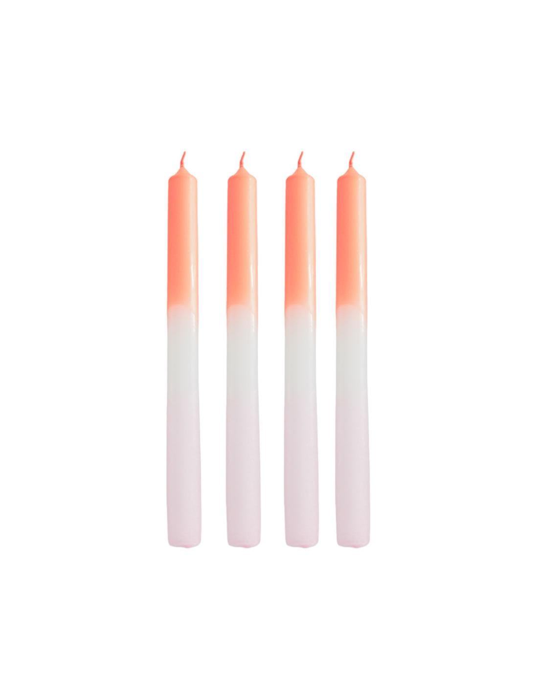Bougies coniques Dip Dye - Orange fluo/Blanc/Rose clair - S4