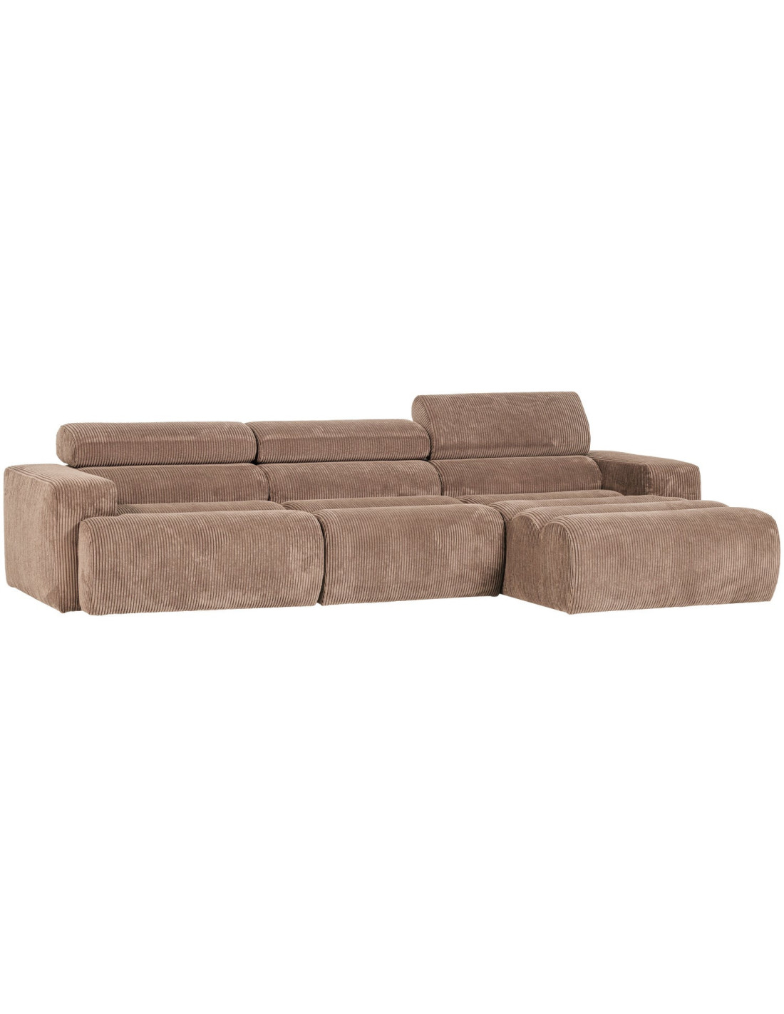 Canapé chaise longue droite Novi tissu côtelé taupe