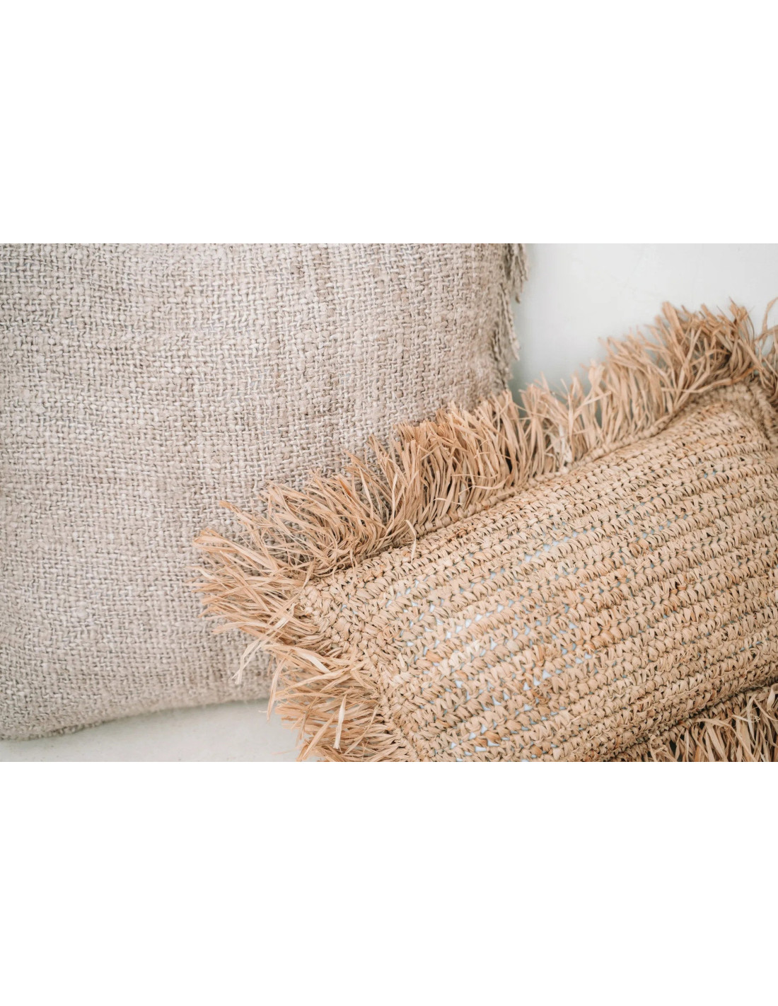 Housse de coussin rectangulaire en raphia naturel - 30 x 50
