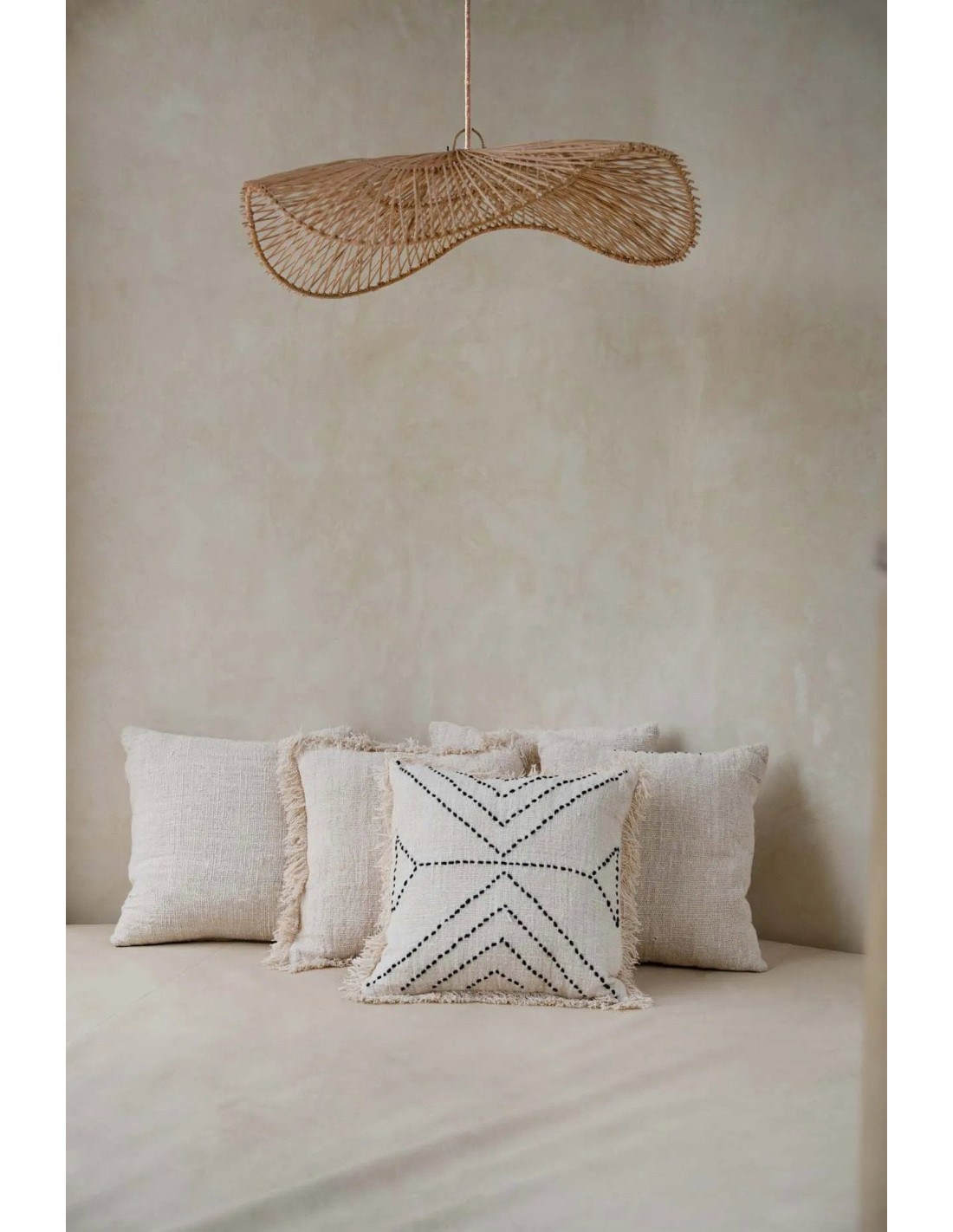 Sublimez votre d?coration int?rieure avec le charme envo?tant de cette housse de coussin ? motif ethnique. Confectionn?e en raphia naturel, elle apporte une touche riche et textur?e ? votre salon, votre chambre ou votre terrasse.