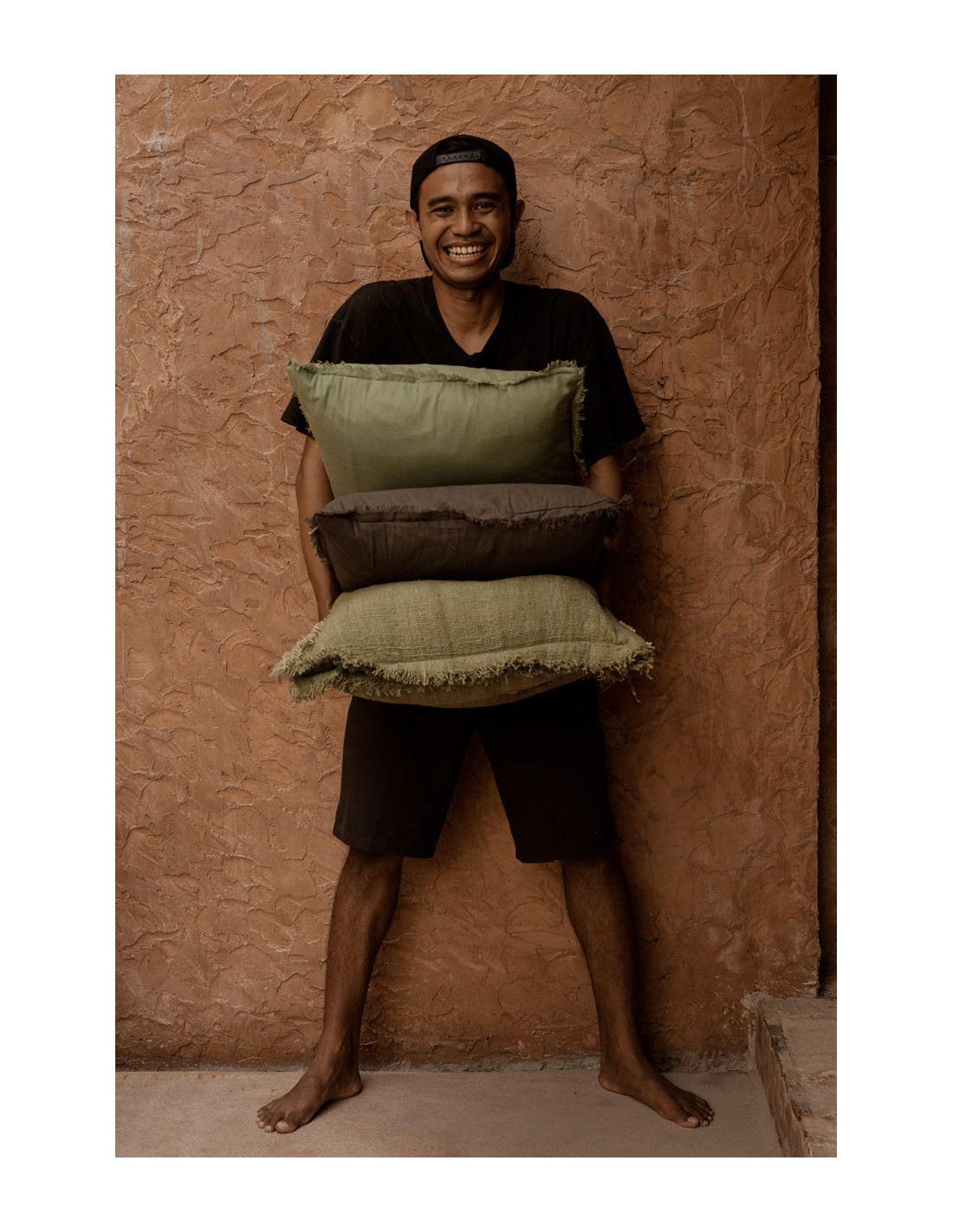 Chaque housse est confectionn?e ? la main avec un soin m?ticuleux, r?v?lant de subtiles variations de tissage et de finition. Ces nuances artisanales soulignent son origine artisanale, garantissant que chaque pi?ce est unique et conf?rant caract?re et authenticit? ? chaque int?rieur.