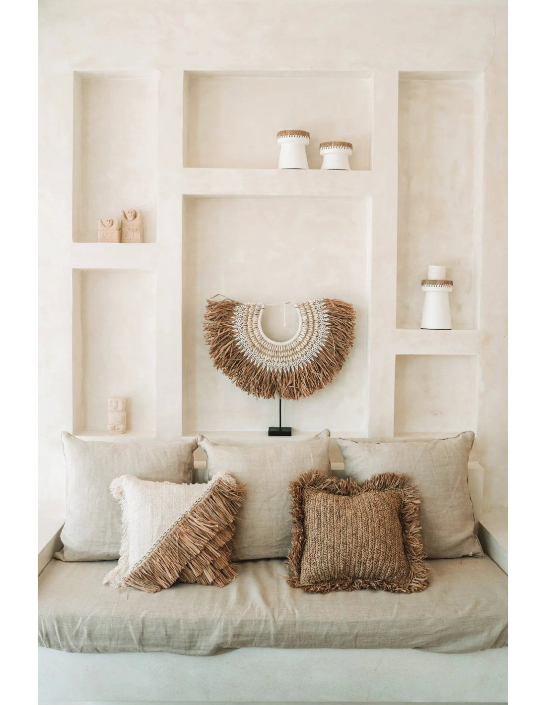Bazar BizarNos housses de coussin raphia super élégantes sont tissées à la main en Indonésie par la population locale. Parfait pour apporter une touche de nature à votre maison ou jardin. Elles ajoutent une texture magnifique à votre intérieur et donnent une touche bohème à votre maison.