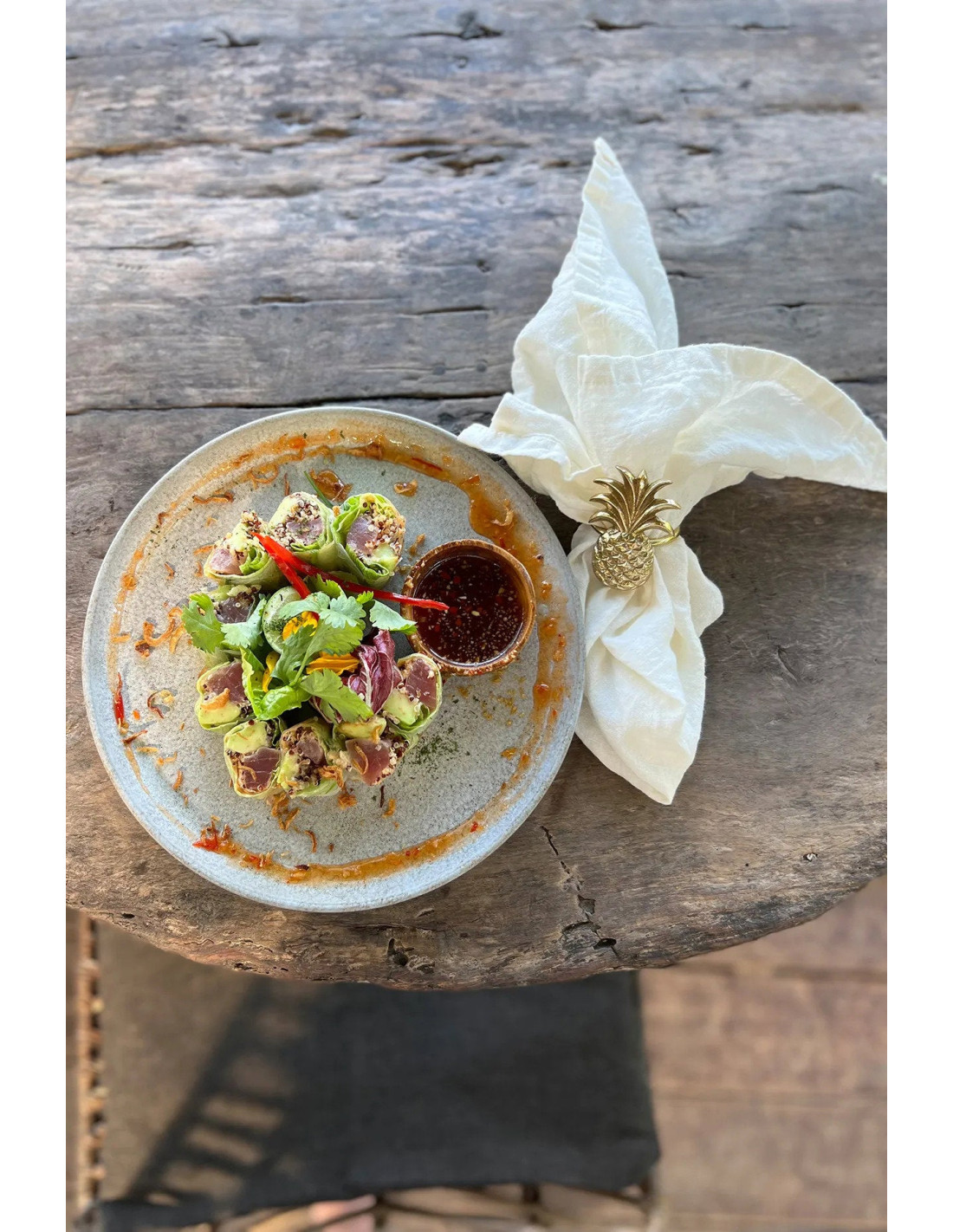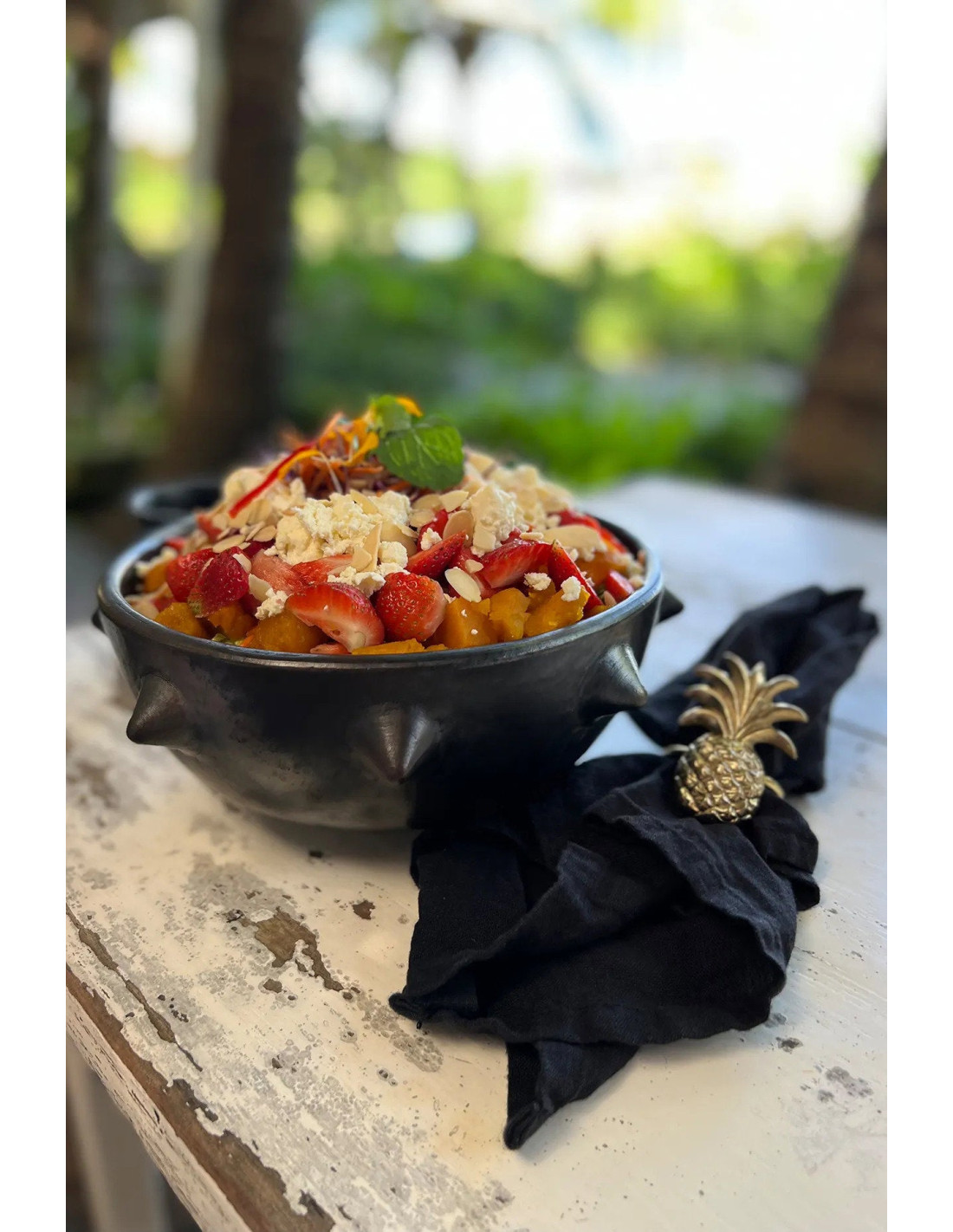 Bazar BizarAjoutez une touche de luxe à votre table avec ce porte serviette ananas en laiton massif! Lourd et orné, ce porte serviette est authentique. Il s'harmonise avec notre collection de couverts en laiton massif, comprenant diverses cuillères et fourchettes. Illuminez votre table pour vos invités!