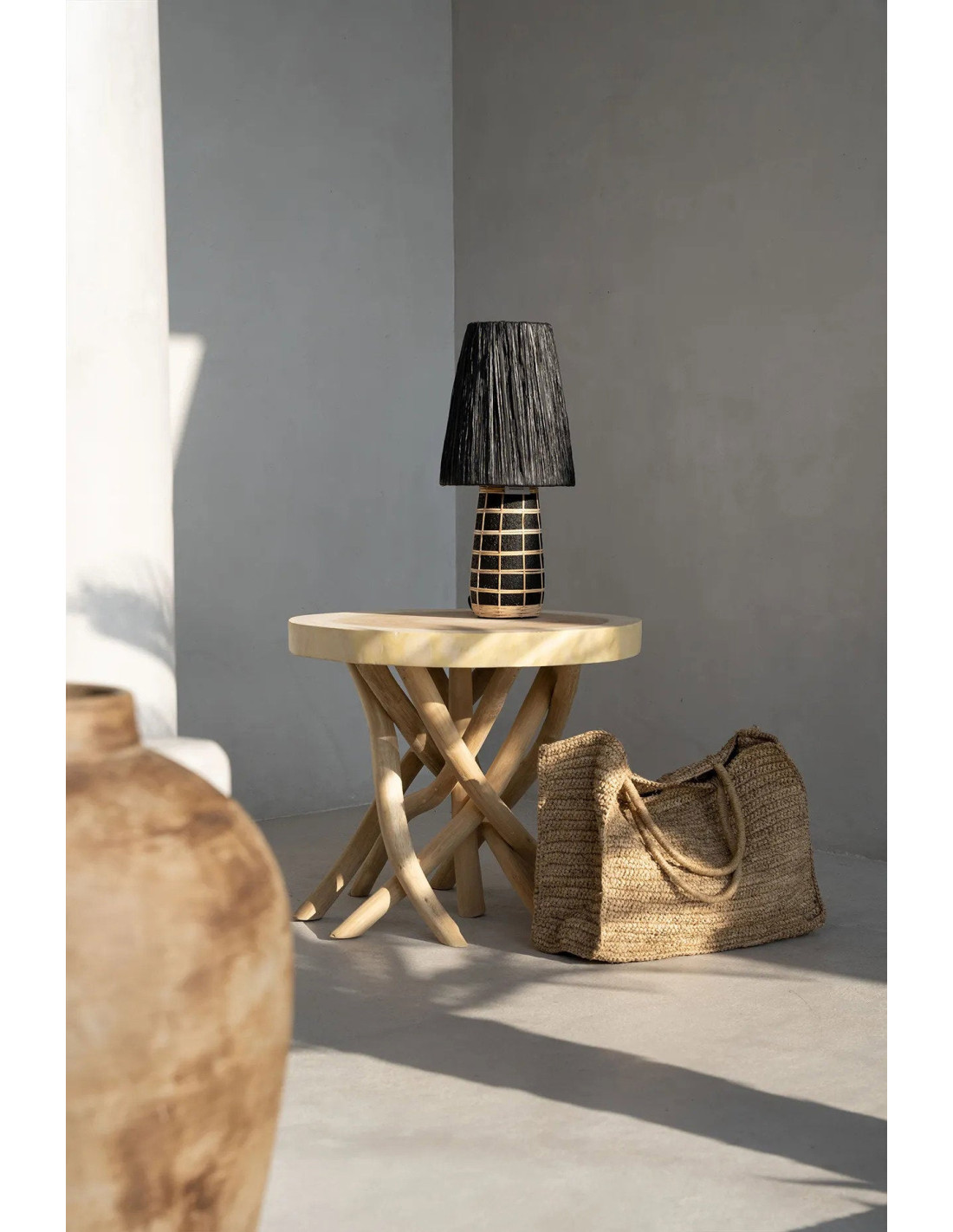 Plongez dans un magnifique resort grec 5 étoiles ou une luxueuse chambre d'hôtel avec cette splendide lampe de table originale. Fabriquée en magnifique terracotta et rotin, notre lampe de table Naxos est disponible en deux couleurs : naturel et noir. Mesurant 56 cm de hauteur, 25 cm de largeur et 25 cm de longueur, elle ajoutera une touche de design à votre espace. Les matériaux utilisés sont la terracotta et le rotin. Câblage inclus.