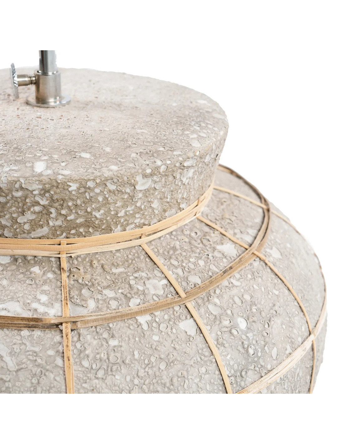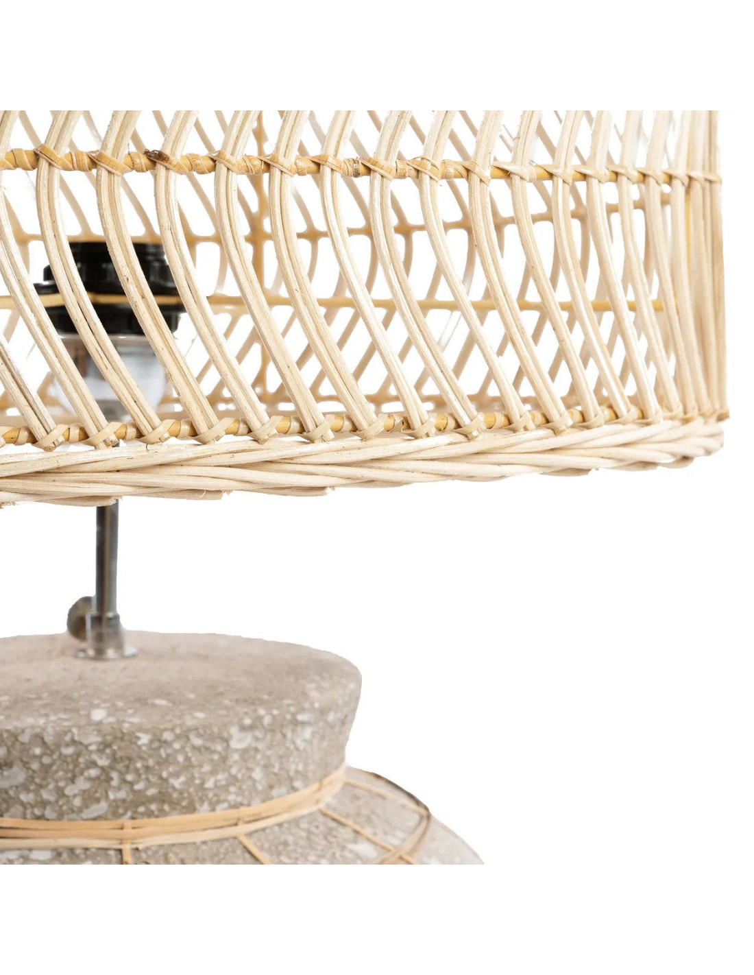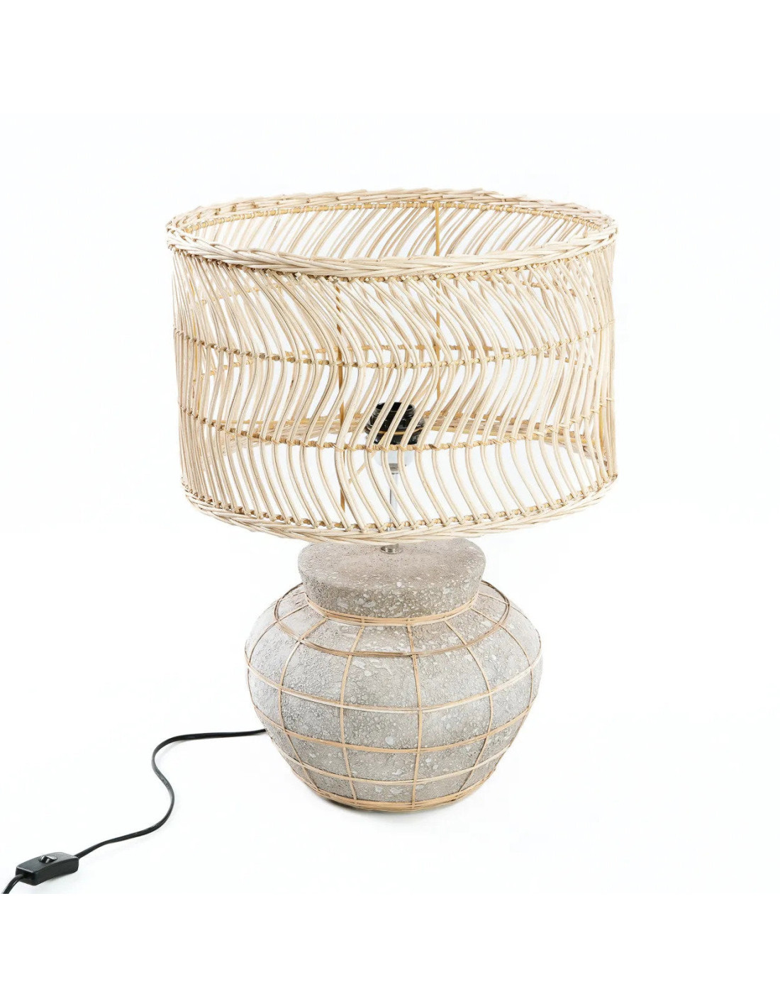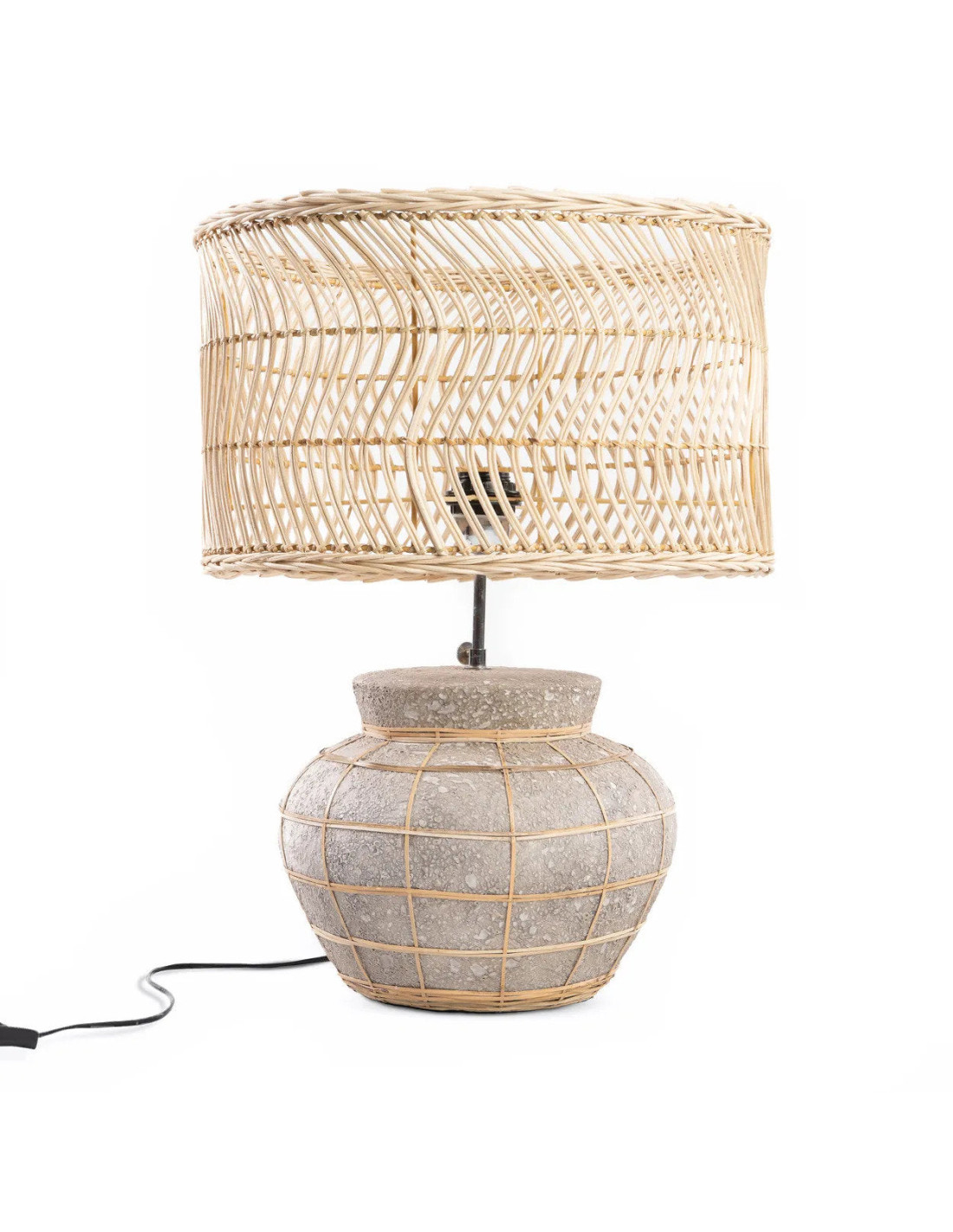 Tout est plus beau avec des courbes, comme cette lampe de table en terracotta et rotin. La Kythira a une belle allure artisanale, avec son pied de lampe gris (avec grille en rotin) et son rotin naturel sur la forme de la lampe qui se marient parfaitement. Parfait pour votre table de nuit ou console! Couleur: Gris béton Naturel. Taille: 48cm de haut, 40cm de large, 30cm de long. Matériaux: Terracotta, Rotin, Herbe. Câblage inclus? Oui (prise standard de l'UE - Type C, douille standard E27).
