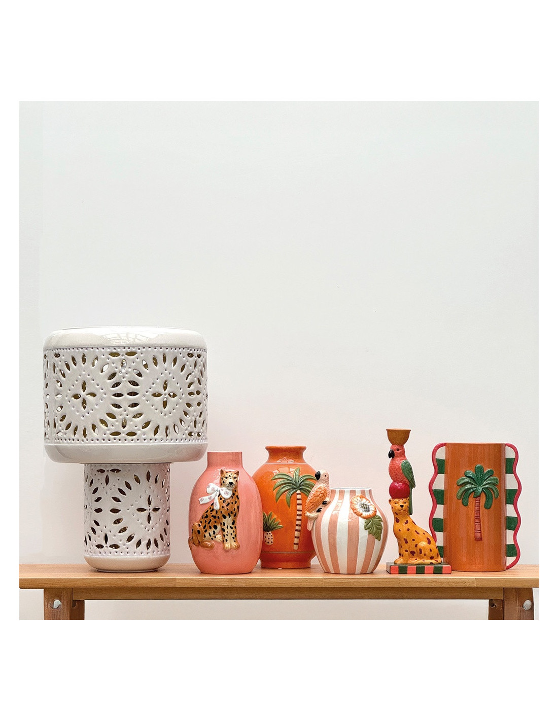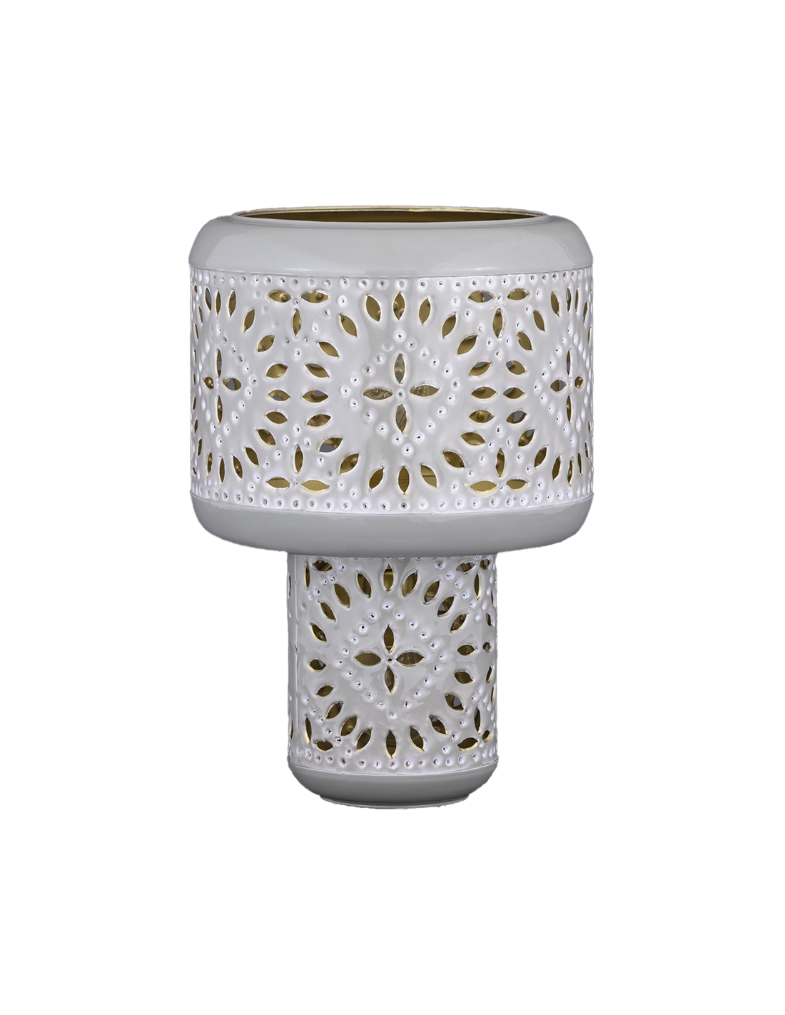 OpjetInspirée des lanternes marocaines, cette lampe en métal émaillé ajouré diffuse une lumière chaleureuse grâce à son double éclairage, dans le pied et l’abat-jour.