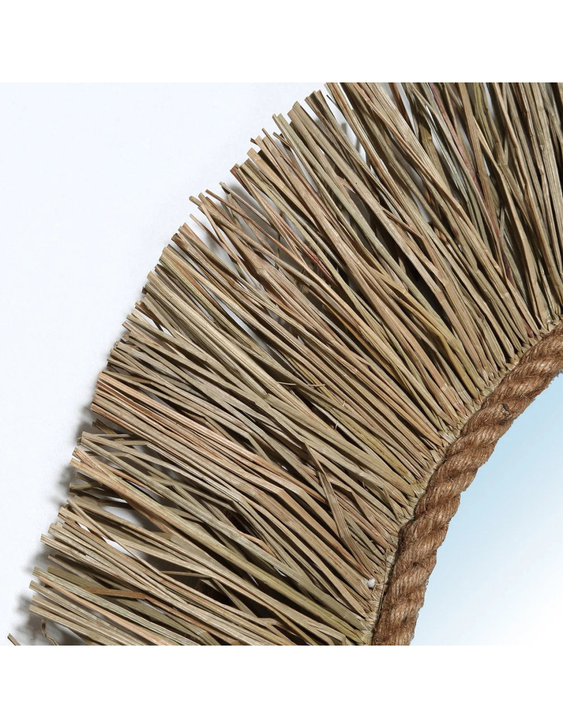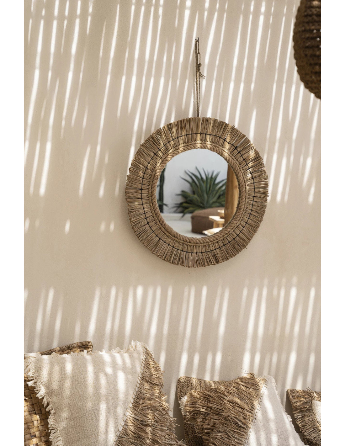 Ce miroir enjolive apporte une touche côtière à votre maison, fabriqué à partir de magnifiques herbes autour d'un centre miroir. Tendance plus que jamais, il ajoute une belle touche bohème terreuse à votre intérieur. Parfait pour toutes les pièces. Fabriqué à partir d'herbes et de fibres naturelles. Des variations de couleur peuvent apparaître.