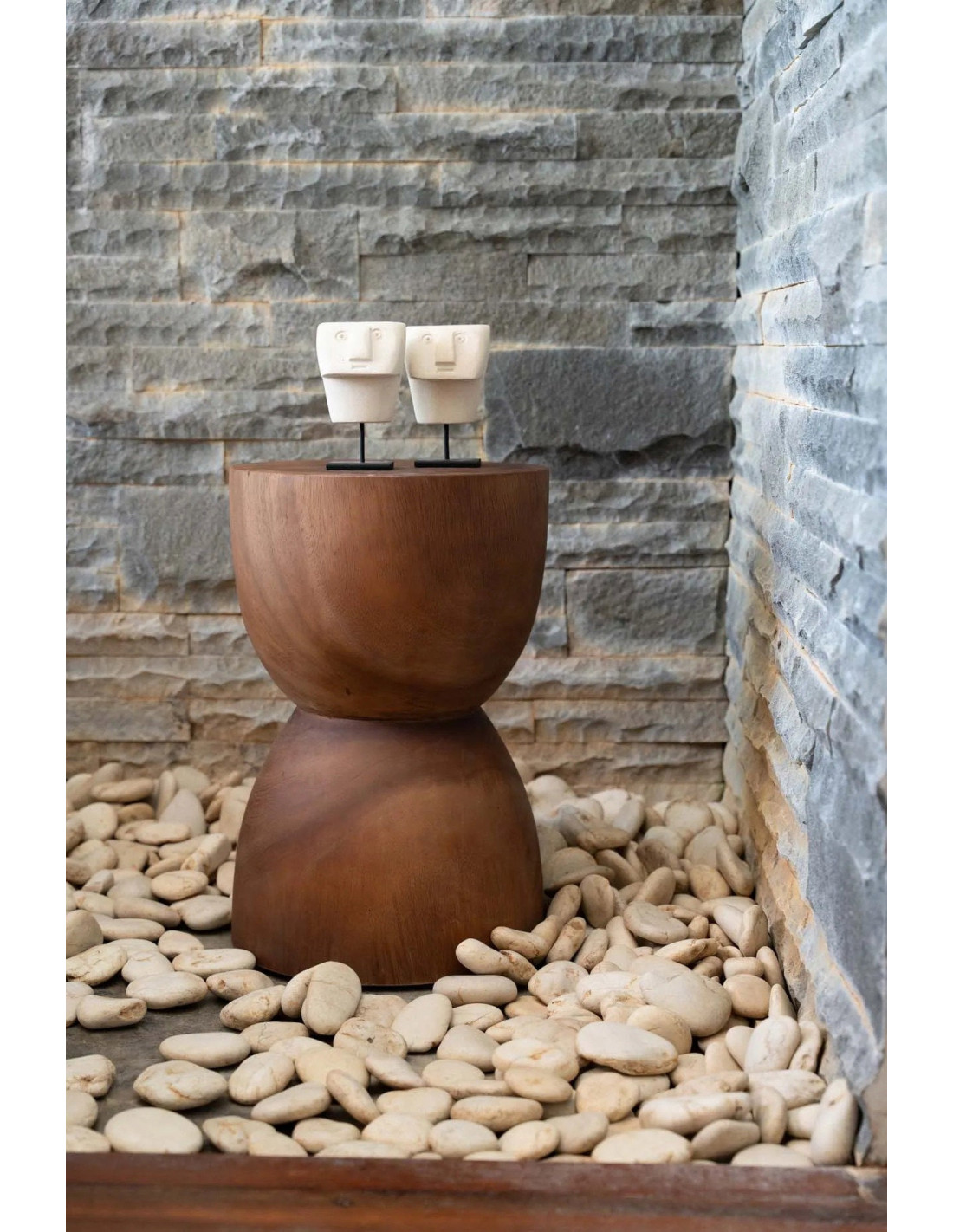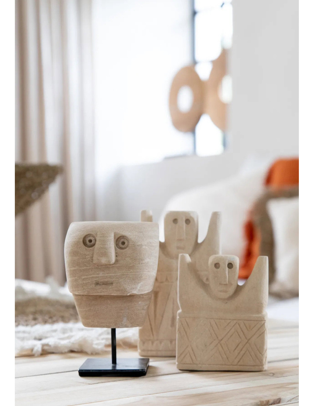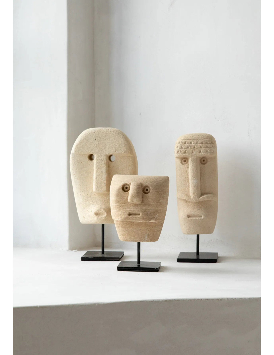 Ces simples statues en pierre proviennent de l'île de Sumba en Indonésie et sont sculptées à la main dans du grès par des artisans locaux. Dans les villages traditionnels de Sumba, des statues comme celles-ci sont placées à l'intérieur et autour de l'entrée de la hutte, fournissant protection et guérison aux occupants à l'intérieur. Elles font une belle déclaration par elles-mêmes ou ont fière allure en grappe pour créer un réel impact. Chaque statue est unique, aucune n'est exactement la même.
