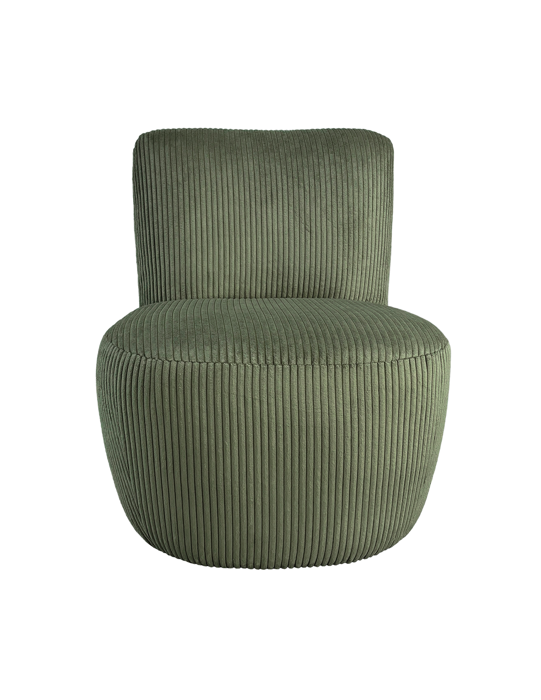 OpjetDossier ergonomique, assise moelleuse, recouvert de tissu côtelé kaki. Le fauteuil Eve se glisse partout grâce à son petit format, tout en ne concédant rien au confort.