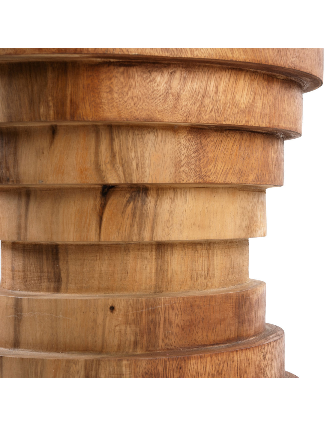 Le tabouret De Mazu est en bois naturel avec un design en forme d'anneaux contemporain. La construction en bois est en suar indonésien avec une finition de haute qualité pour un look spécial. Peut être utilisé comme une table d'appoint pour ajouter une touche élégante à votre intérieur.