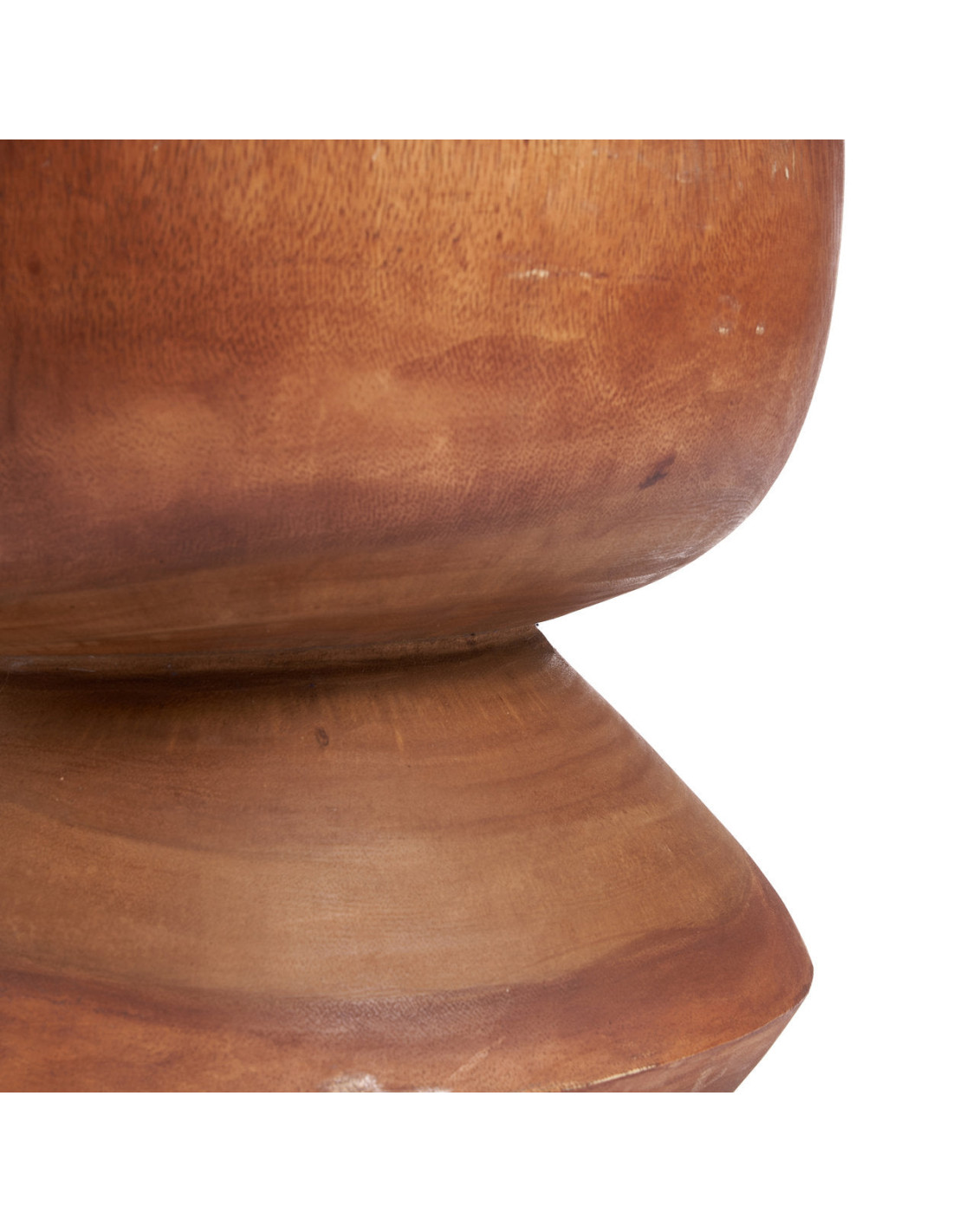 Ce tabouret en bois de suar naturel est une pièce de design faite à la main, solide et durable, idéale pour toute maison et pouvant également servir de table d'appoint.