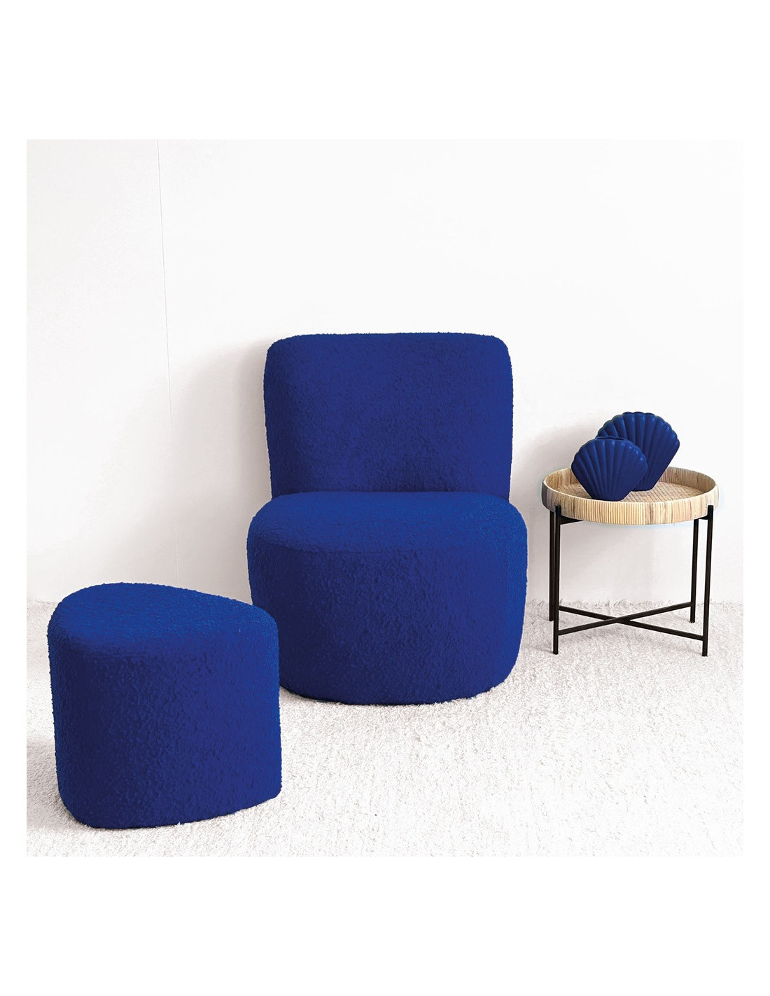 OpjetLe tabouret Eve revêtu d'un tissu bouclette bleu est un élément qui saura donner du peps à votre décoration. Sa forme singulière fait de lui un objet de déco unique.