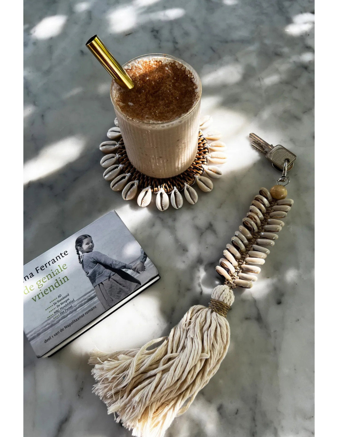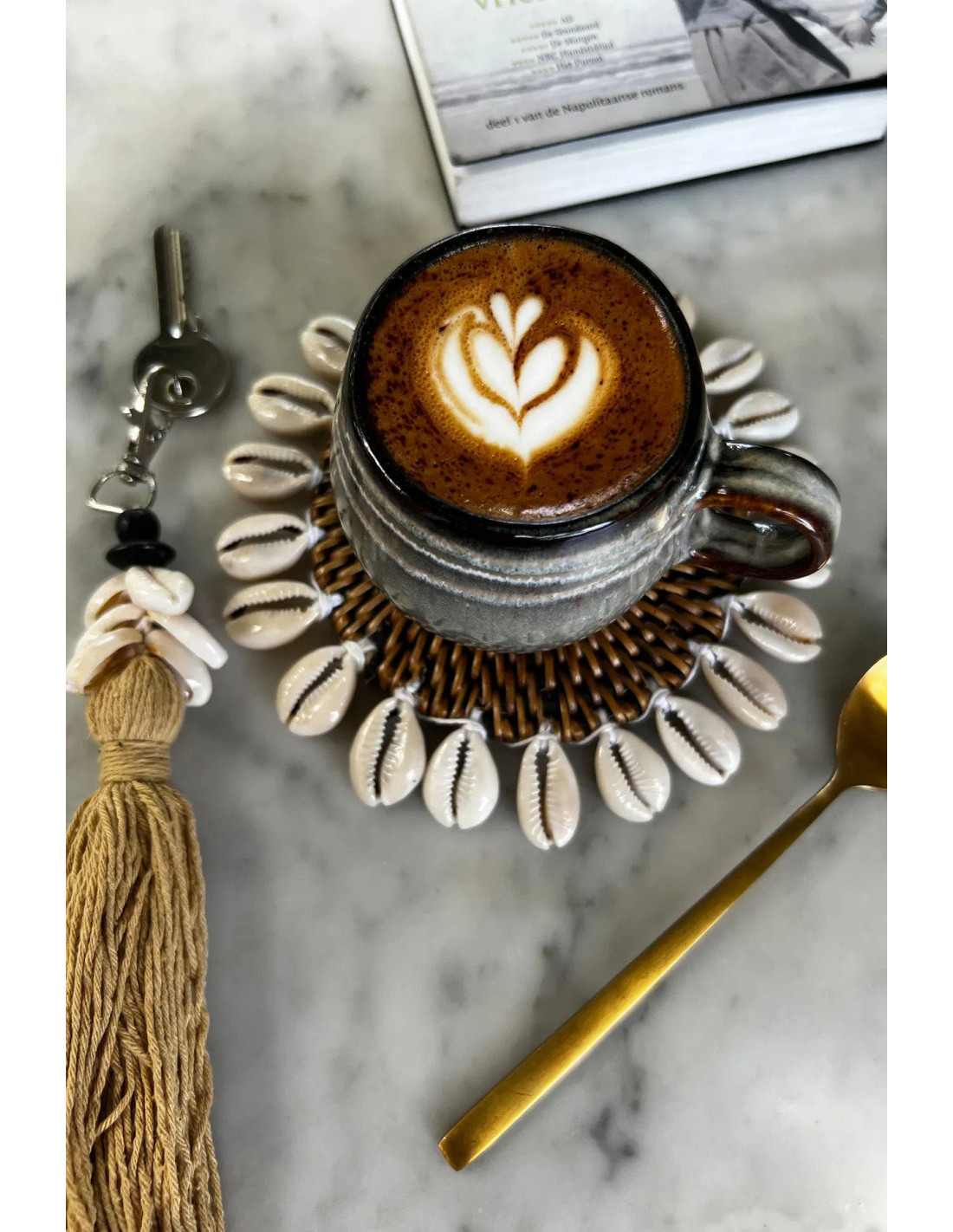 Apportez le style îlien chez vous avec ce superbe dessous de verre tissé à la main orné de coquillages en rotin. Ce dessous de verre, entouré de cauris, convient à toute table dressée et ajoute une touche tropicale, donnant à votre maison une ambiance insulaire irrésistible. Nous sommes prêts pour l'apéro!