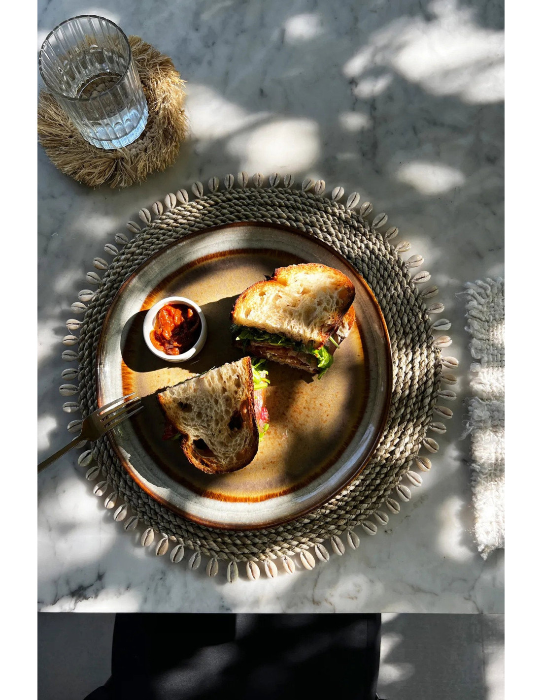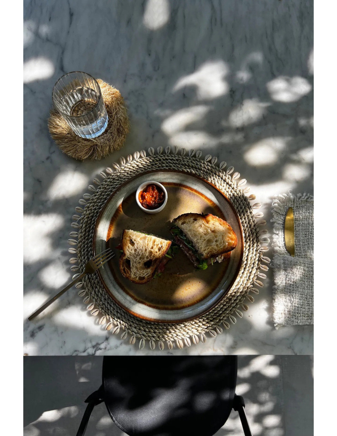 Set de table en coquille et raphia - Naturel
