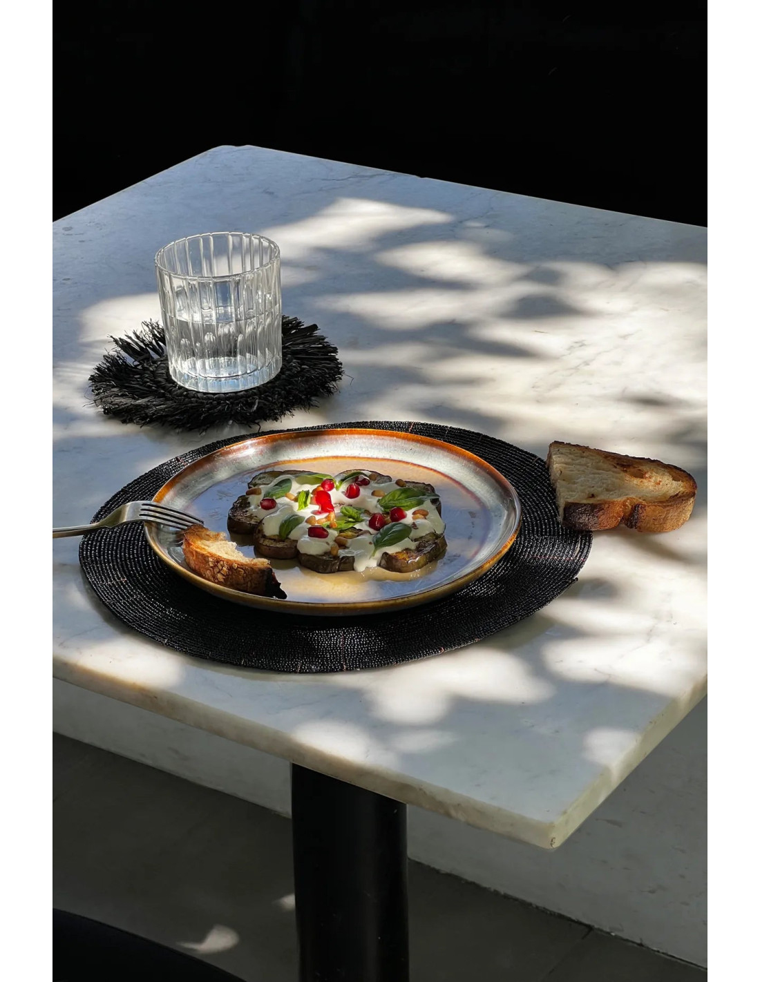 Ces magnifiques dessous de verre en perles noires mesurent 30 x 30 cm et sont fabriqués en perles et fer. Parfaits pour ajouter une touche de style bohème chic à votre table.