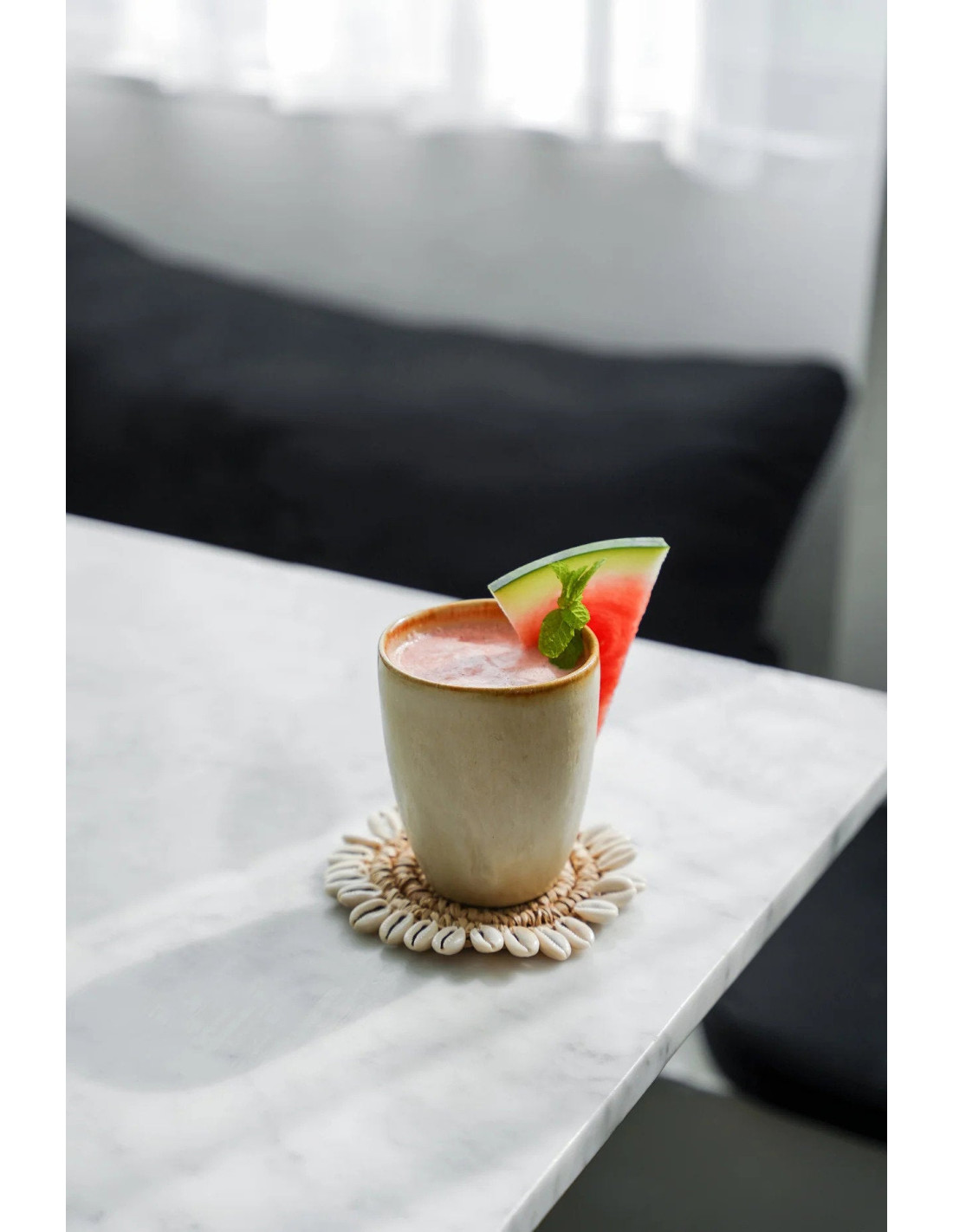 Set de table en coquille et raphia - Naturel