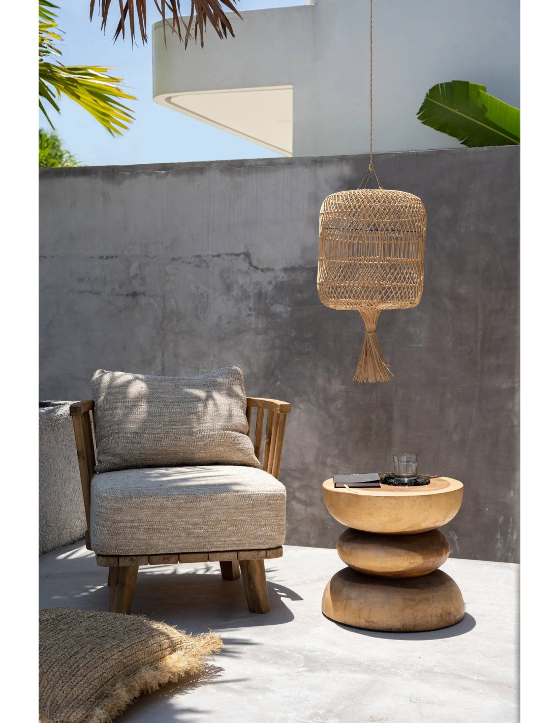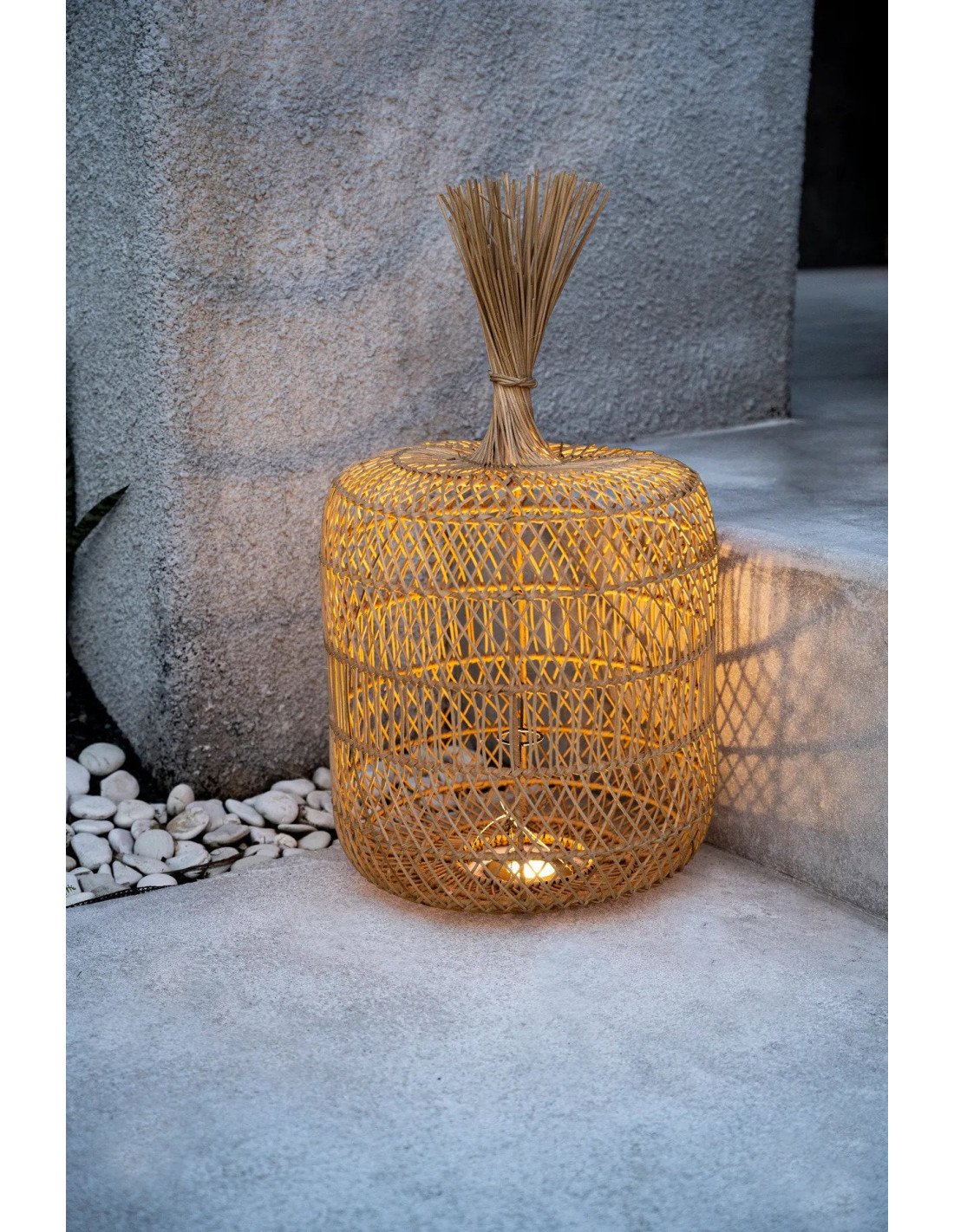 Une superbe lampe en rotin multifonctionnelle qui ajoute une magnifique allure bohème à votre maison ou à votre espace extérieur couvert. Selon votre intérieur, cette lampe peut être utilisée comme lampe suspendue ou lampe de sol. Crée une ambiance lumineuse belle et chaleureuse. Laissez-vous inspirer par ces lampes uniques, un must décoratif! Douille et câble de lampe non inclus!