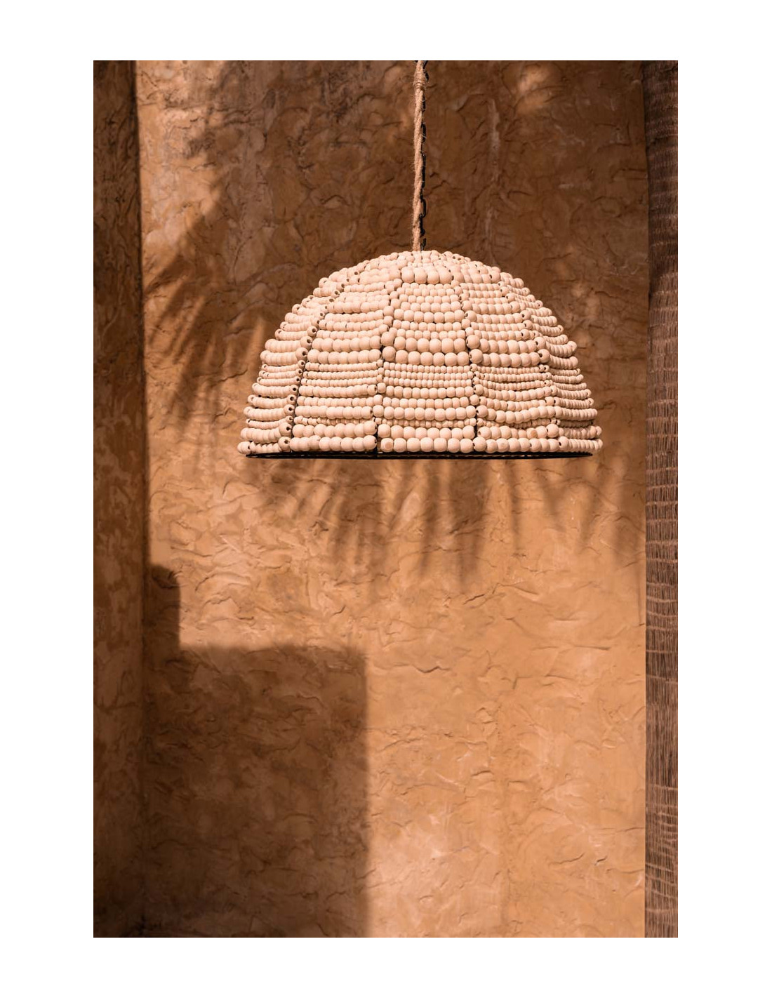 Dans la suspension en forme de d?me de perles de bois, la lumi?re et la texture s'entrem?lent. Ce luminaire d?coratif naturel incarne l'?quilibre et la simplicit?. Sa silhouette en forme de d?me diffuse la lumi?re ? travers des rang?es de perles de bois lisses, cr?ant une douce lueur mouchet?e ?voquant les matins ensoleill?s du bord de mer.