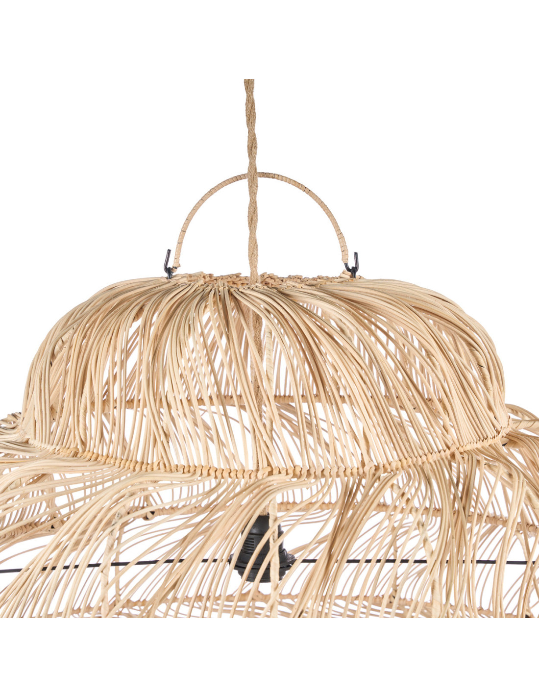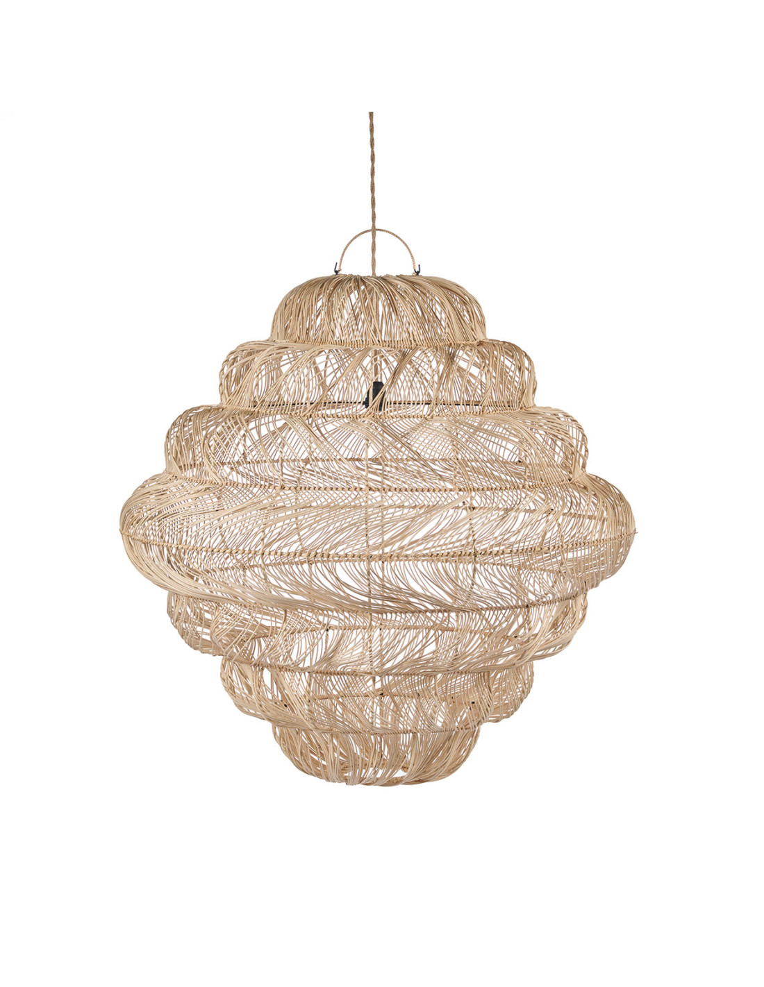 Avec sa silhouette vaporeuse, la suspension Aurora Puff r?invente la lampe suspendue XL Puff, ? la fois luminaire et ?uvre d'art. Ses dimensions imposantes attirent le regard, tandis que sa structure en rotin tress? lui conf?re une pr?sence l?g?re et accueillante.