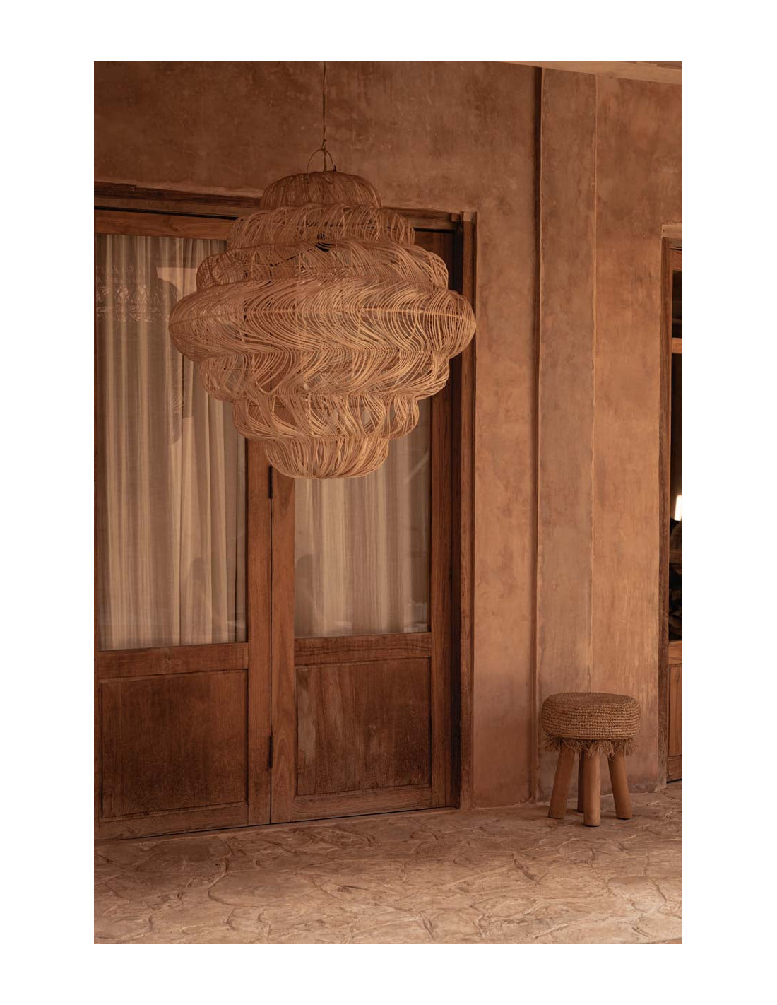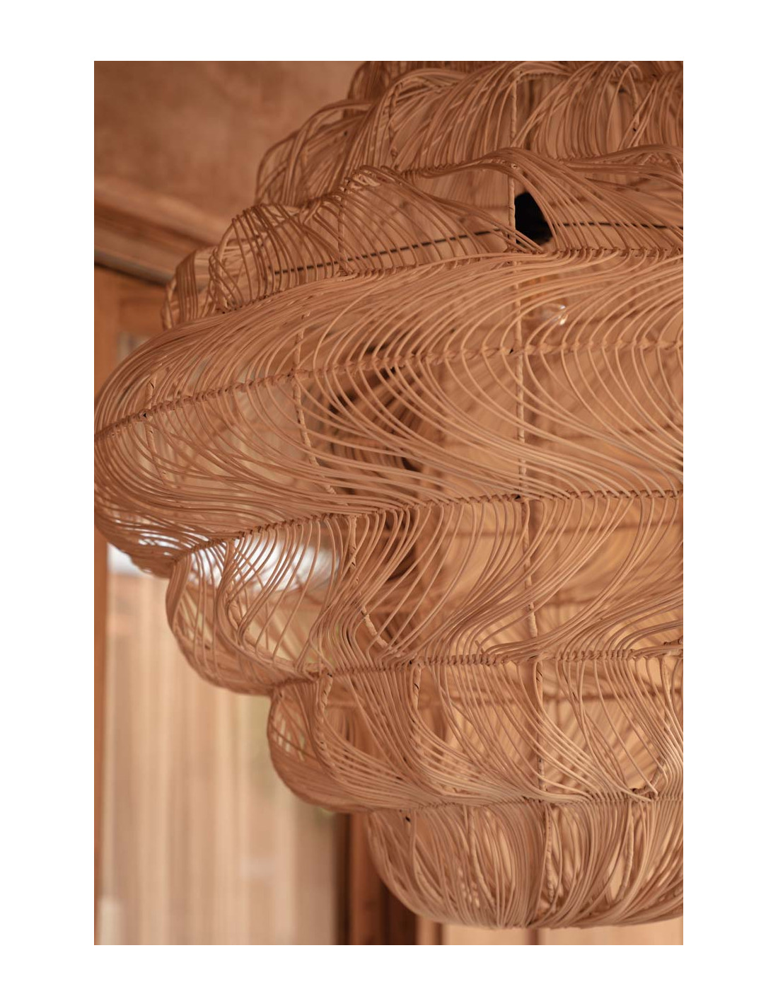 Chaque lampe porte les traces d'un tissage artisanal, o? de subtiles variations de motif et de tension r?v?lent le rythme du travail de l'artisan. Ces irr?gularit?s font partie int?grante de son caract?re, conf?rant ? chaque pi?ce un caract?re unique et lumineux.