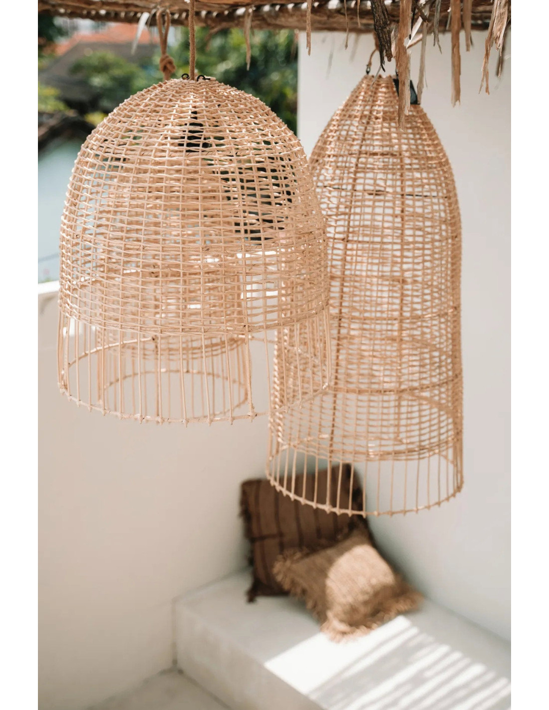 Cette suspension en rotin en forme de cage évoque l'ambiance des îles italiennes avec son design côtier fantastique. Pas de câblage électrique ni de prises. Fournissons les fixations séparément, au plafond ou avec prise. Naturelle, 90cm de hauteur, 45cm de largeur, 45cm de longueur, rotin. Non inclus: câblage (utilisez une douille standard E27).