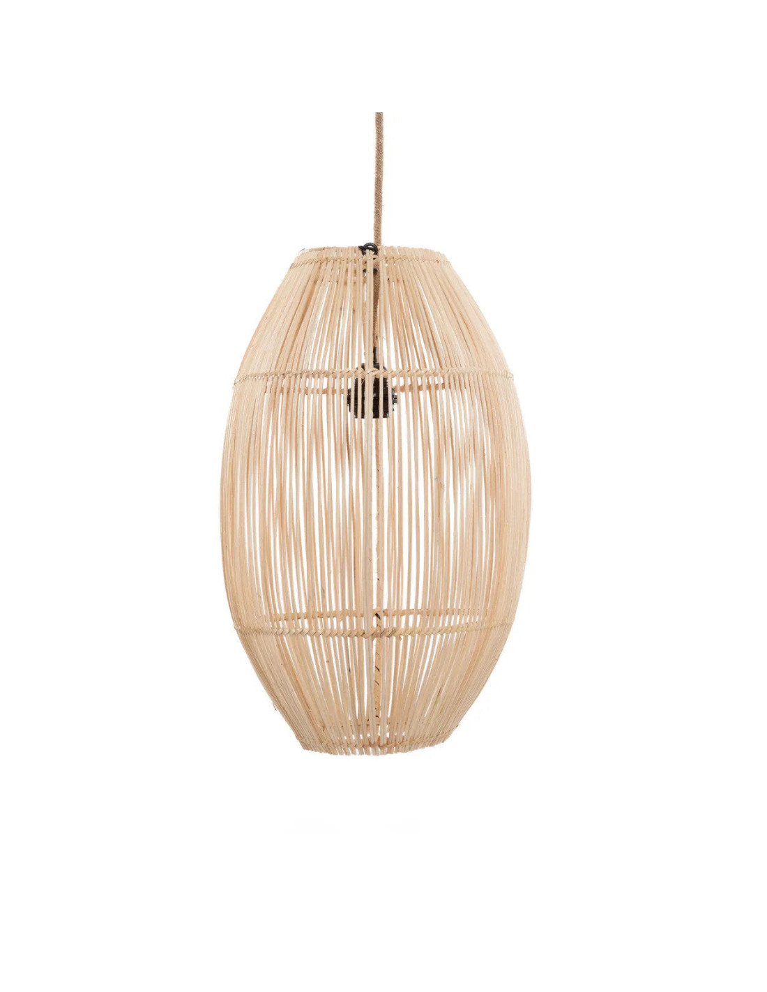 Cette lampe cylindrique polyvalente est disponible en trois tailles pour une polyvalence maximale. Parfaite en tant que suspension ou lampe sur pied. Fabriquée en rotin naturel, elle mesure 48 cm de haut et 30 cm de large et de long. Aucun câblage électrique inclus