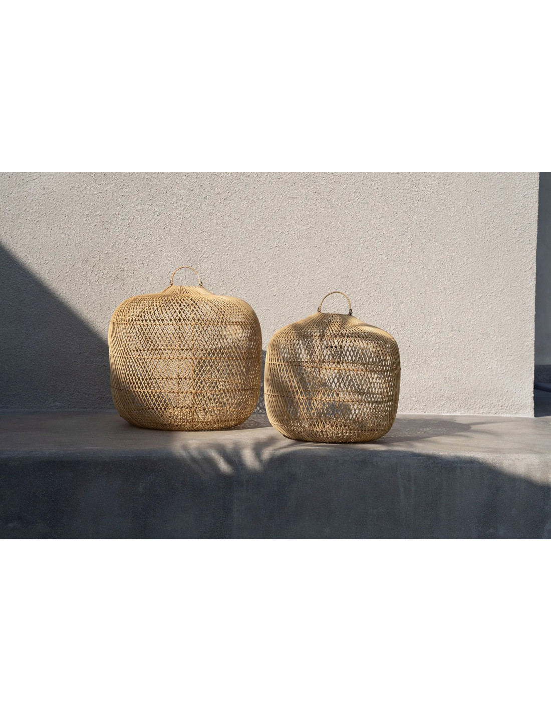 Bazar BizarLa lampe Batu Bolong en rotin est un exemple d'art raffiné. Polyvalente, elle peut être utilisée comme suspension ou lampadaire. Disponible en deux tailles, elle s'accorde parfaitement en combinaison.