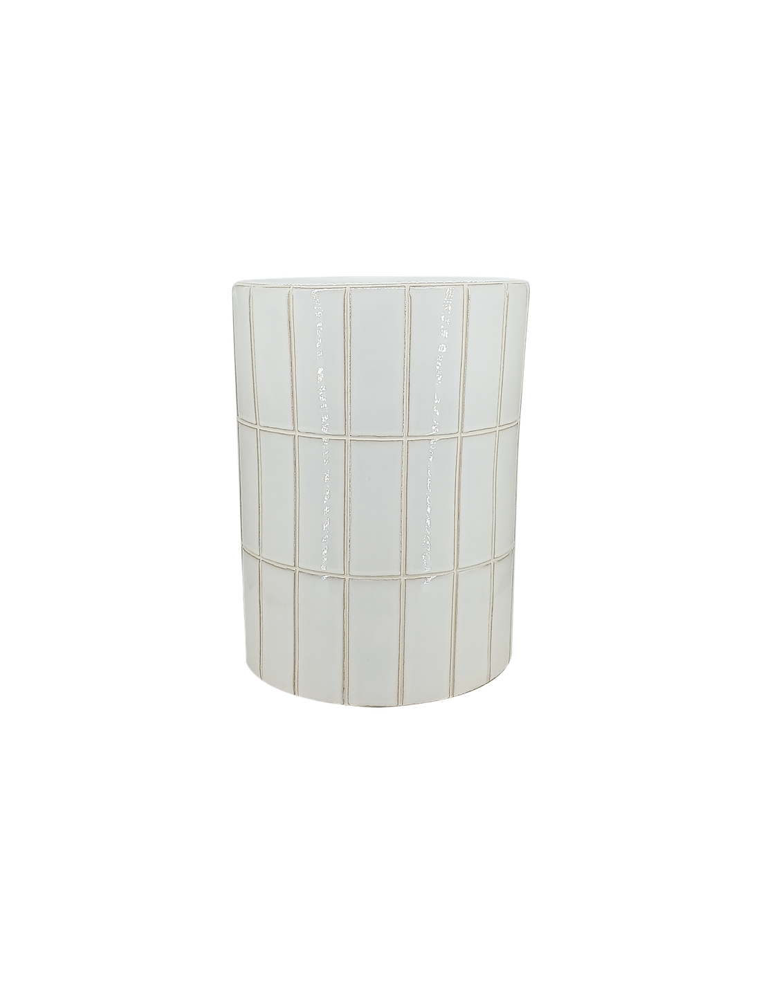 OpjetTabouret ou bout de canapé en céramique, intemporelles, entre objet d’art et mobilier. Résistants, indoor et outdoor. Finition façon carrelage, esprit slow life.