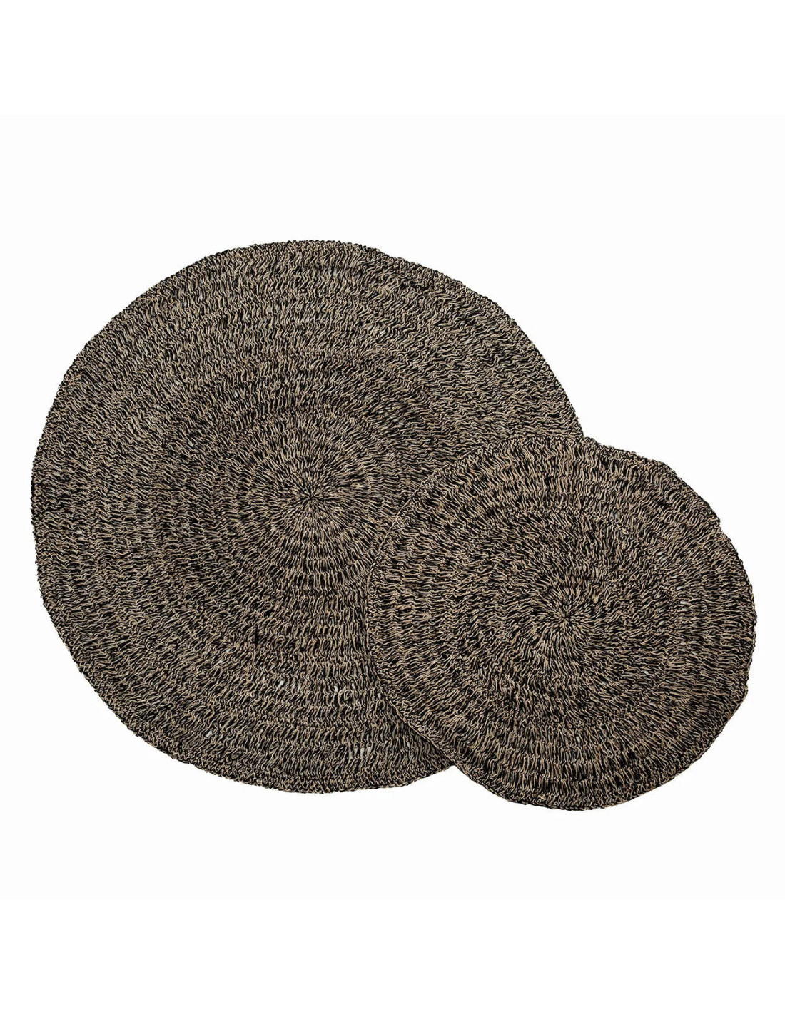 Notre tapis rond en seagrass, fait de raphia, sisal et palmier, offre une couleur naturelle et noire. Il apporte texture et douceur à vos sols et convient parfaitement à la cuisine, au salon ou à la terrasse couverte.