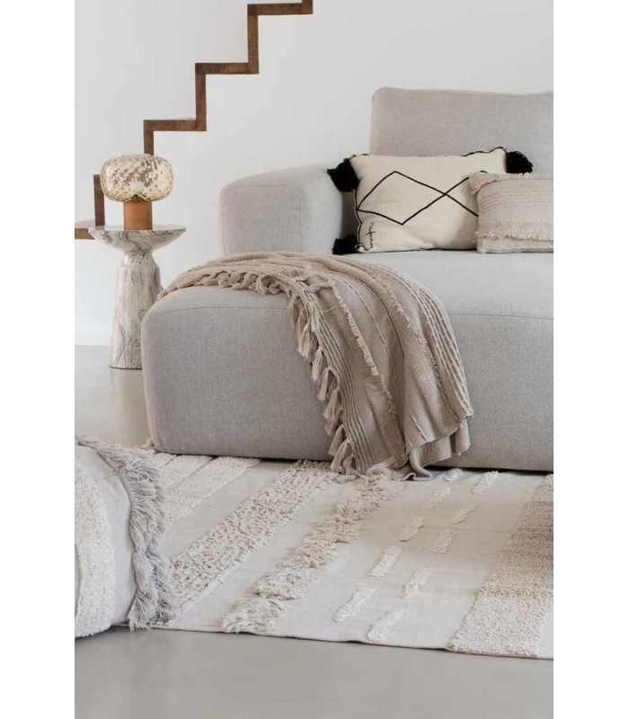 Lorena CanalsUn tapis de la collection Berber qui se distingue par ses finitions artisanales. La broderie sur les bords frangés et le tuftage mélangé ajoutent une touche vintage à une pièce qui s'intègre à toutes les décorations.