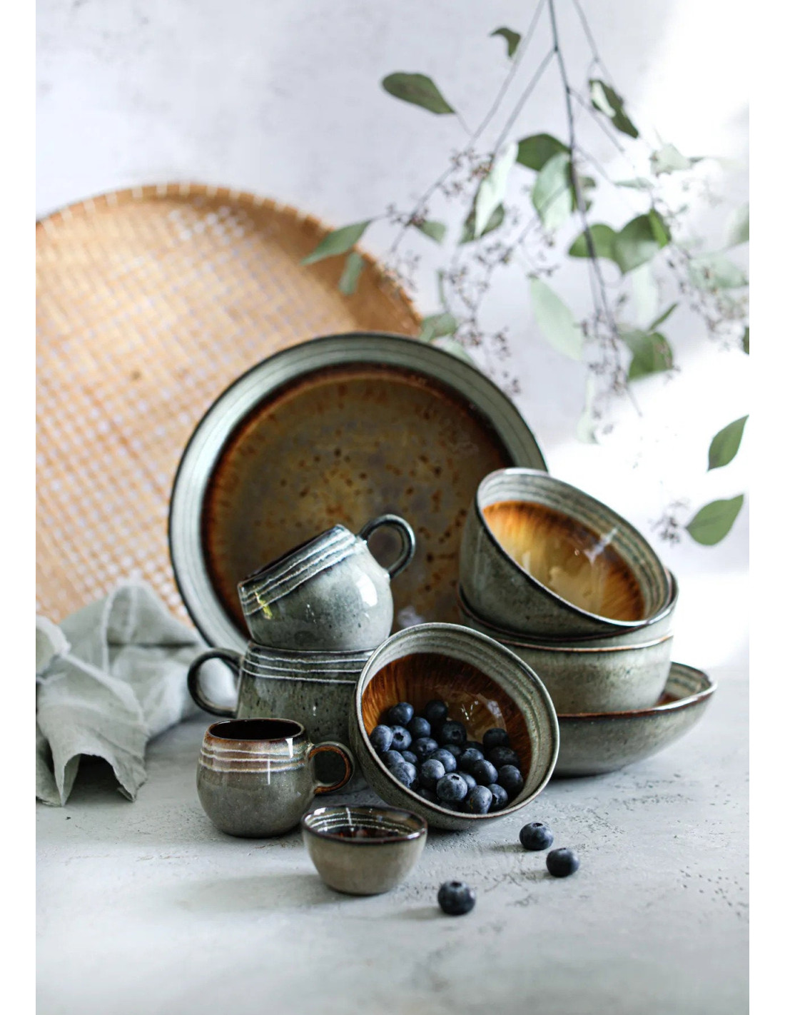 Lors d'un brunch, d'un déjeuner ou d'un dîner, rien n'est plus agréable qu'une table joliment dressée avec une vaisselle superbement choisie. La Collection Comporta est créée avec un émail craquelé qui offre une intensité unique à chaque pièce. Les couleurs varient du brun au bleu profond avec des nuances vertes.