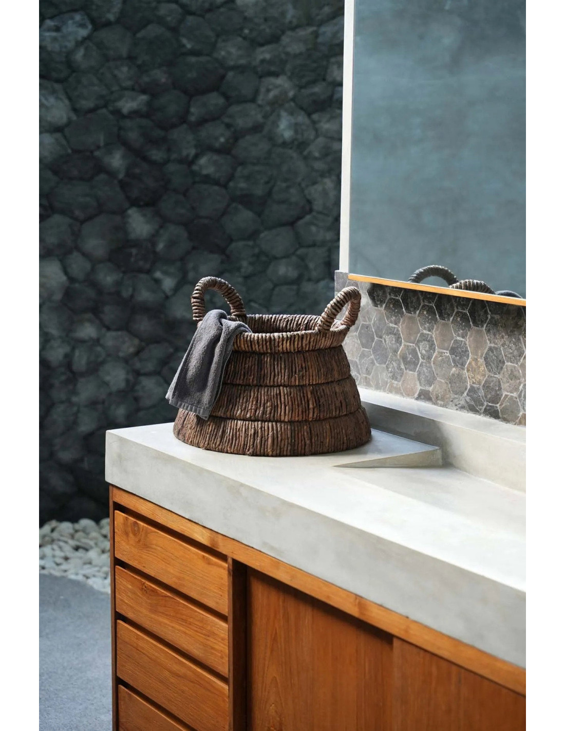 Ce panier en banane tressée donne une touche naturelle à votre déco avec sa forme triangulaire et ses poignées pratiques. Utilisez-le dans n'importe quelle pièce pour une belle touche de style.