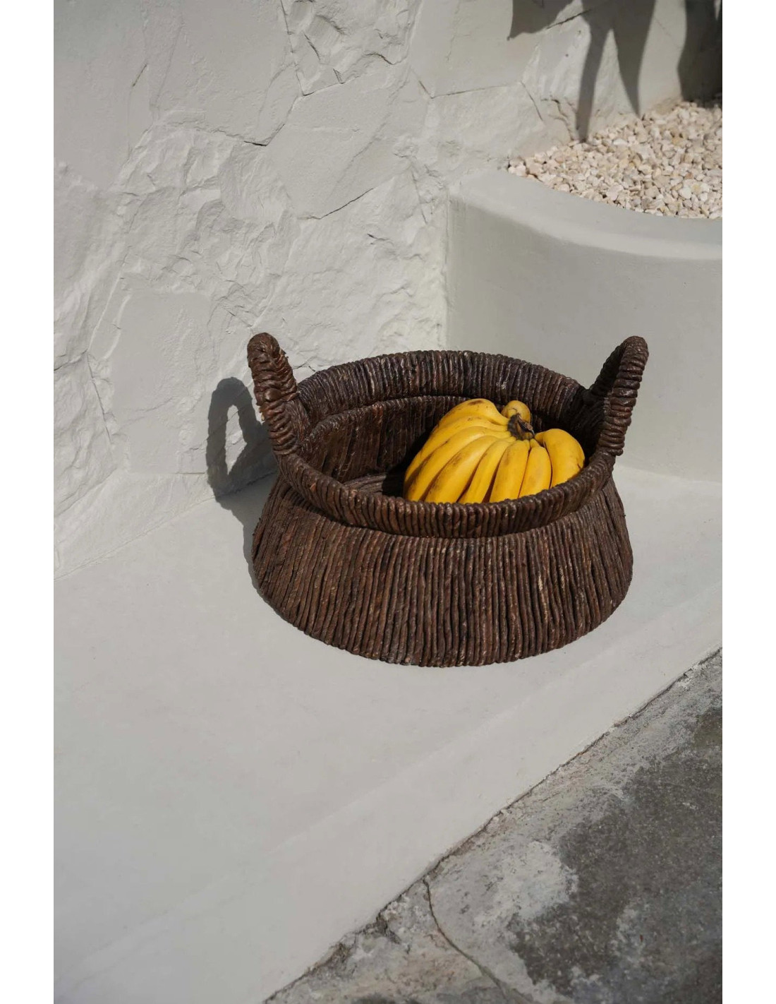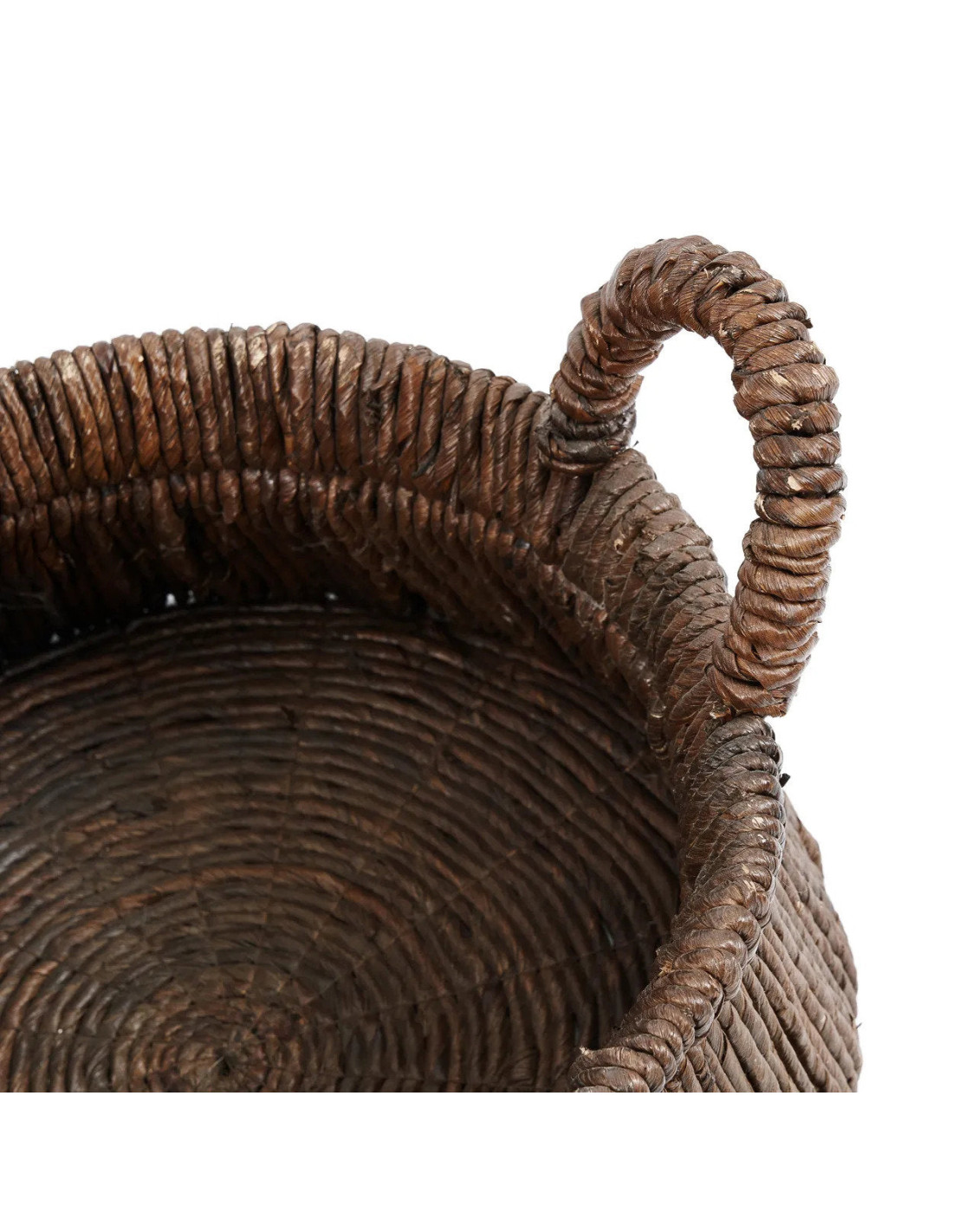 Bazar BizarFabriquée à 100% en feuille de bananier naturelle, tissée à la main dans un design triangulaire qui ne manquera pas de susciter la conversation. Soulevez-la facilement par les poignées et ajoutez maintenant son charme brun foncé à la pièce de votre choix. Couleur: Naturel Hauteur (cm): 26,5 Largeur (cm): 42 Longueur (cm): 42 Matériaux: Feuille de bananier