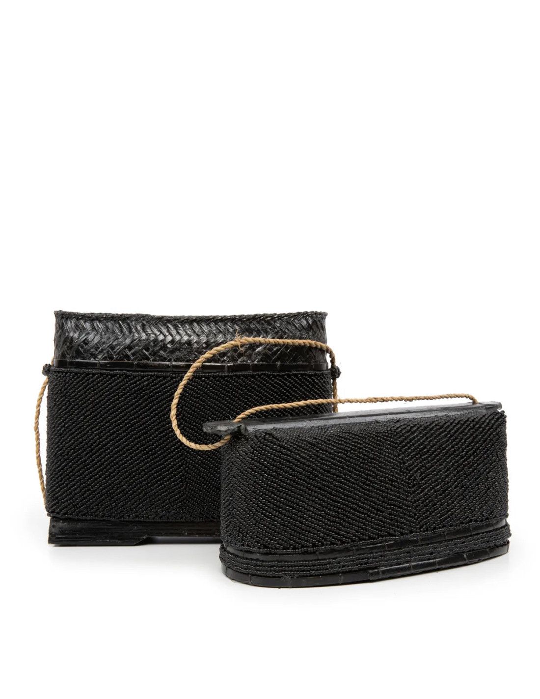 Set 3 Paniers Rayes Jonc Noir