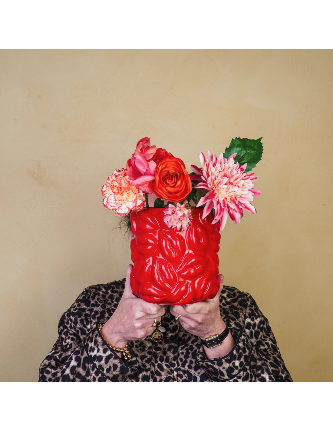 HousevitaminEMBRASSE-MOI - Vous cherchez un vase à fleurs au design unique qui est aussi un pot de plante et qui vous rendra heureux chaque fois que vous le regarderez ? Ce vase/pot de plante design fabriqué par Housevitamin est exactement ce dont tout intérieur a besoin ! Les lèvres en ressortent et on dirait qu'elles vous embrassent. C'est votre propre 'Vase et pot Embrasse-moi' ! Il est fait de céramique colorée et est étanche. Obtenez cet accroche-regard maintenant ! Caractéristiques importantes : - Fait de céramique - Étanche - Taille : 17,5x17,5x17,5 cm - Volume : 2,2 litres Astuce de style : Donnez-lui simplement une bonne place et il attirera l'attention de tout le monde.