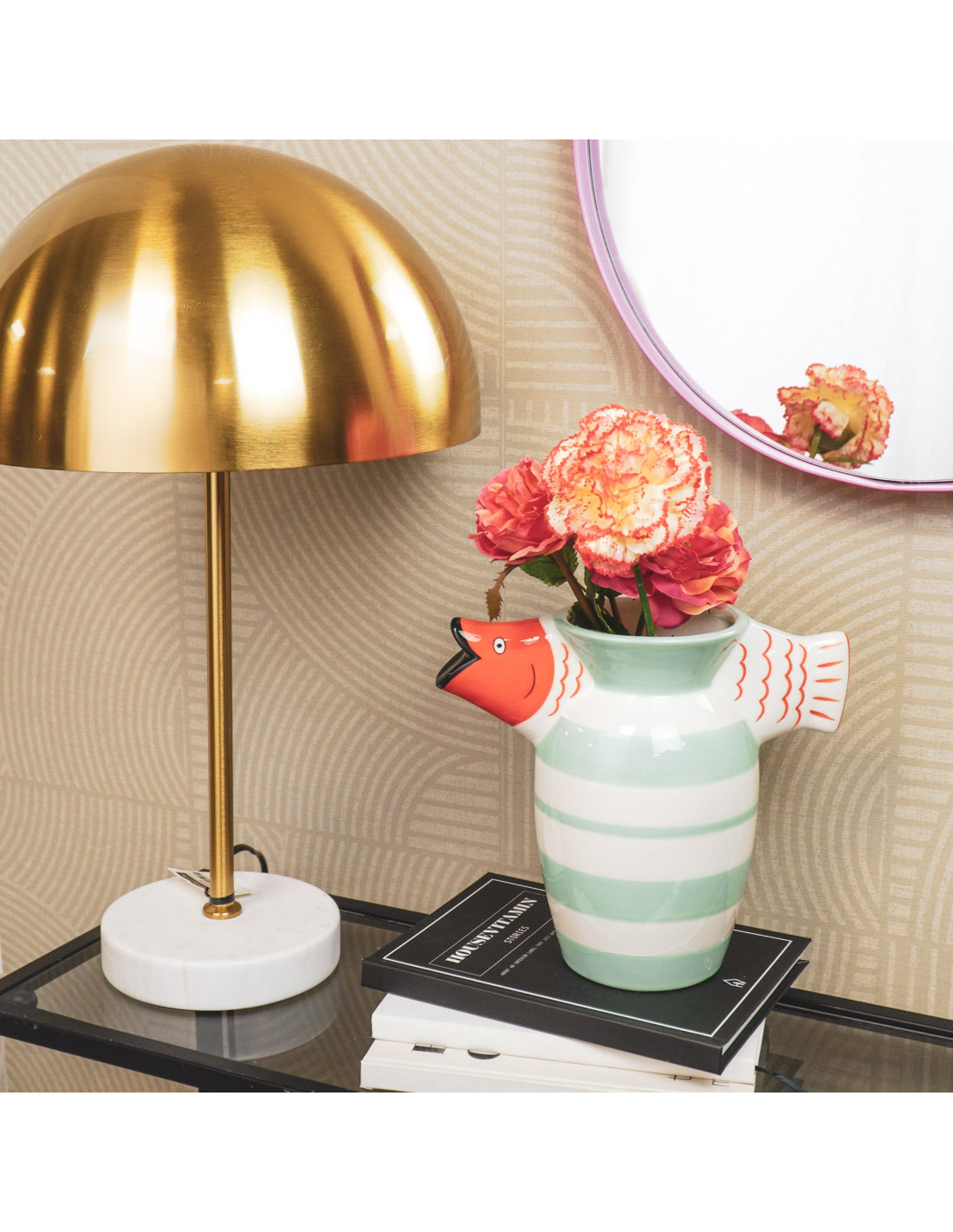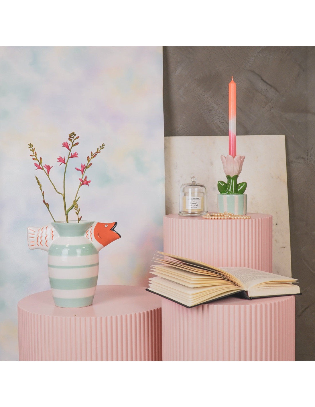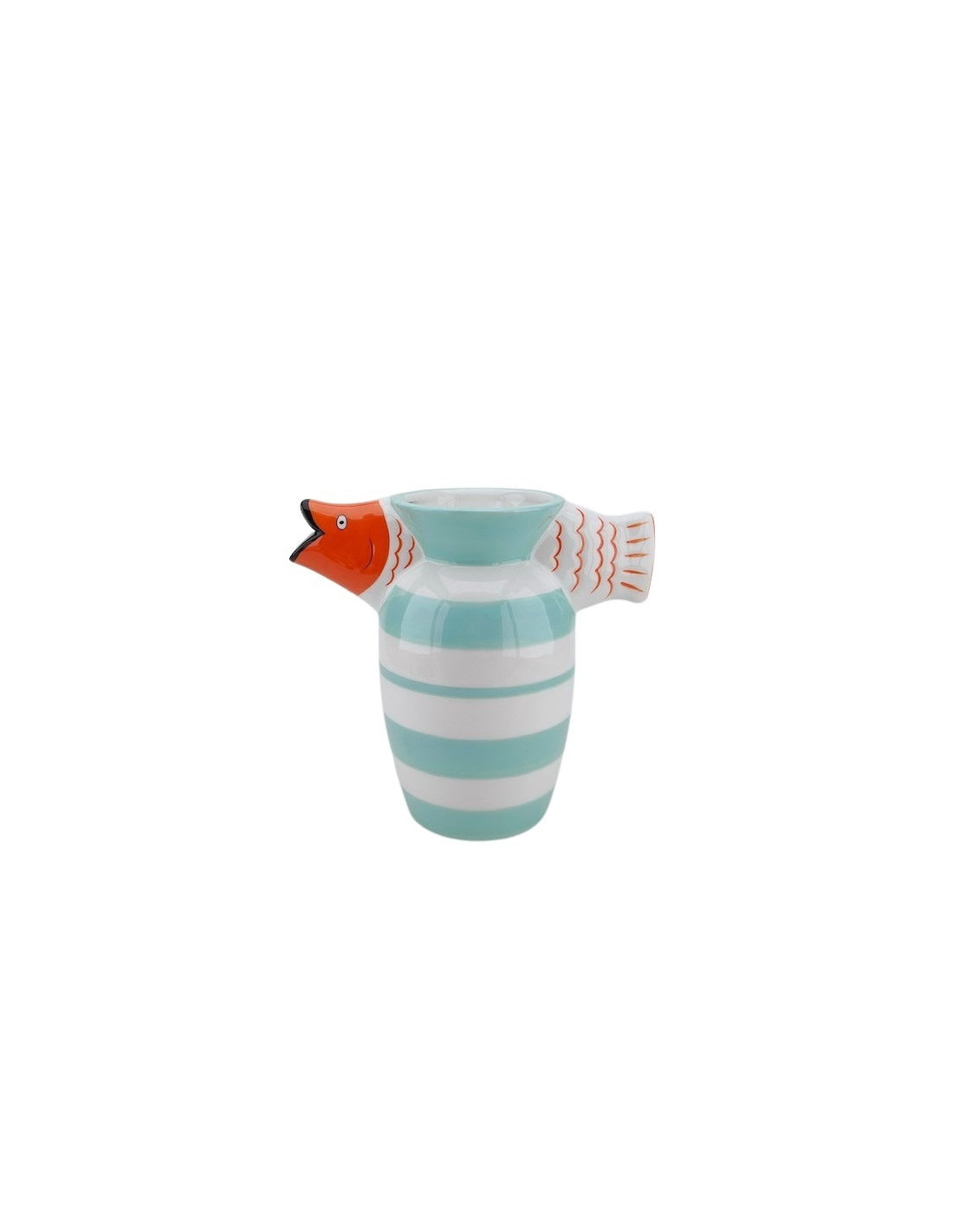 Vase - Poisson - Dolomite - Menthe/Blanc/Orange - 23x12,5x21cm
