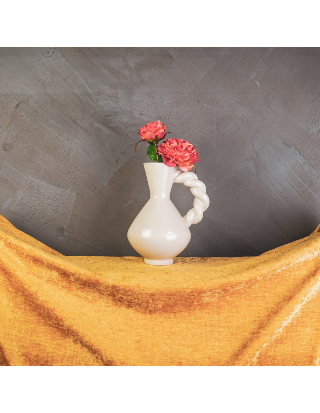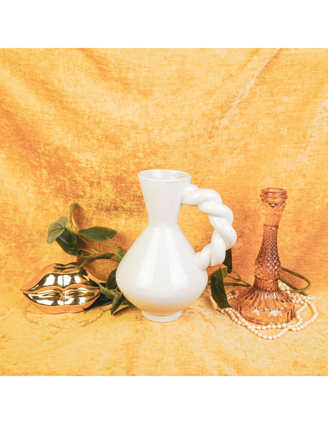 HousevitaminAUTRE CHOSE - Vous cherchez un vase ou une cruche unique pour compléter votre intérieur ? Découvrez ce vase magnifique. Avec sa poignée torsadée et sa finition couleur sable, ce vase est un véritable accroche-regard dans n'importe quelle maison. Caractéristiques principales : Fabriqué en : dolomite Dimensions : 17,5x13,5x22cm Conseil de style : Placez-y quelques branches ou une seule fleur—beau dans sa simplicité.