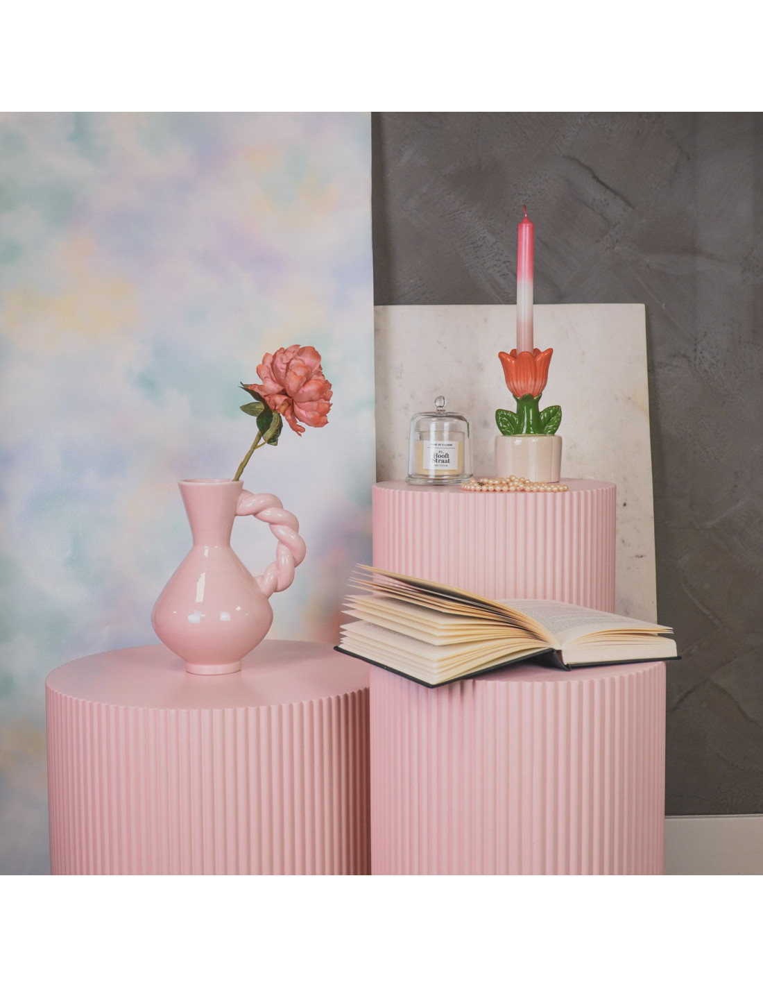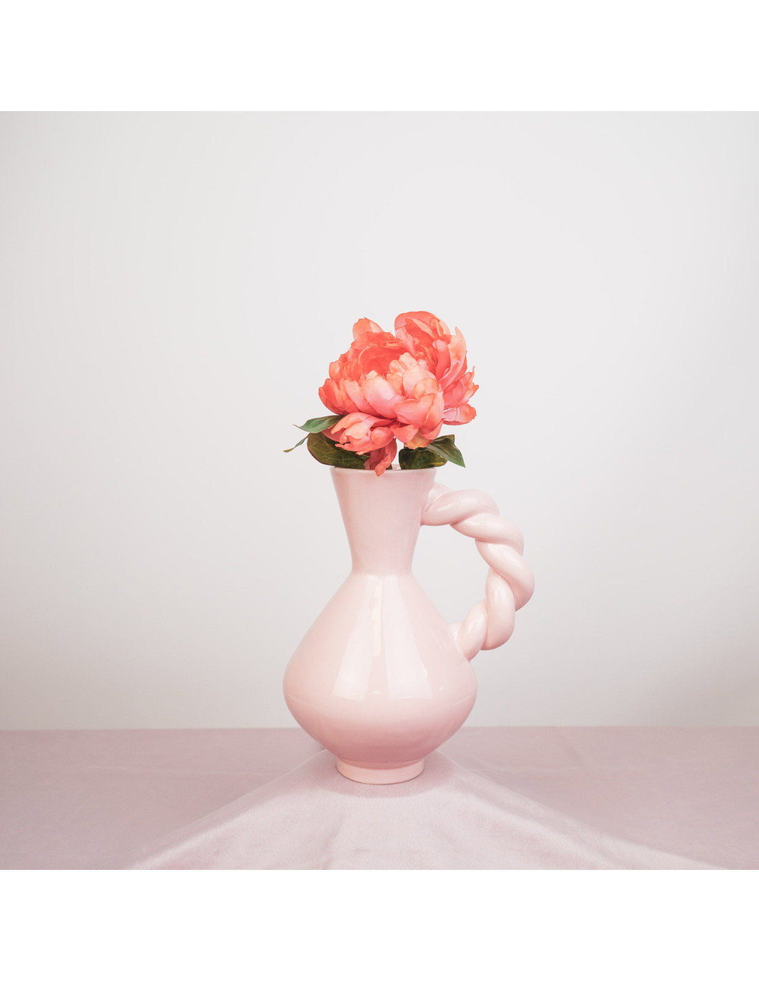 Vase - Anse torsade - Dolomite - Rose - 17,5x13,5x22cm