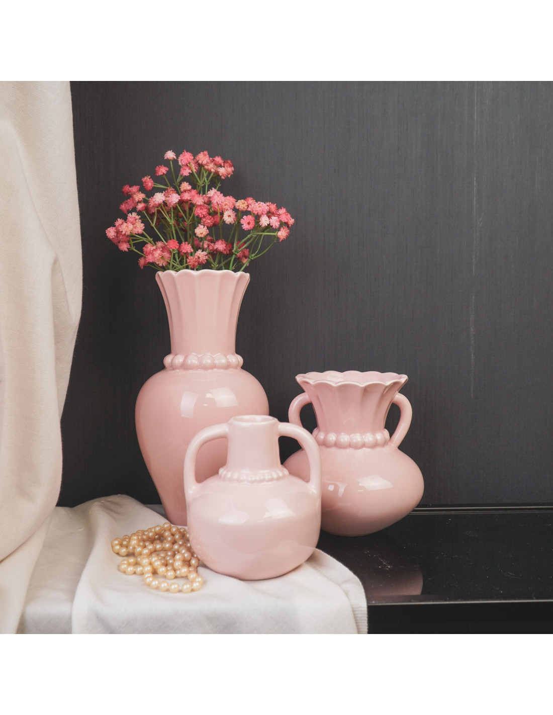 Vase - Col Perle - Grés - Rose Clair - 14x14x15cm