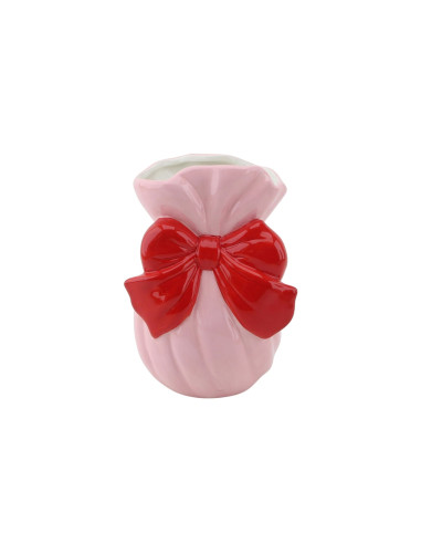 Vase - Noeud - Dolomite - Rose/Rouge - 11x10x16cm