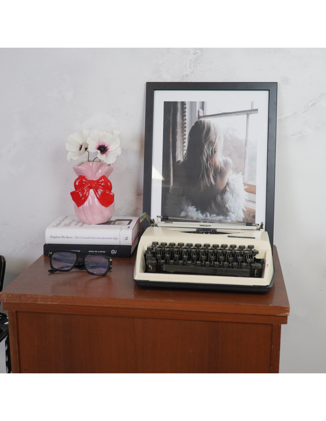 HousevitaminApportez une touche de charme et d'élégance à votre intérieur avec ce magnifique vase en céramique en forme de bouteille. Le design épuré et minimaliste prend une tournure ludique grâce au large nœud gracieusement noué autour du vase. Cette combinaison de simplicité et de détails saisissants fait de ce vase un véritable accroche-regard sur votre table, buffet ou rebord de fenêtre. Que vous choisissiez une seule fleur, un petit bouquet ou rien du tout, ce vase ajoute toujours une atmosphère chaleureuse et accueillante à n'importe quel espace. Parfait comme cadeau original ou pour vous faire plaisir ! Caractéristiques importantes : - Matériau : dolomite - Étanche - Forme : élégante en forme de bouteille - Décoration : large nœud autour pour un accent ludique - Dimensions : 11x10x16 cm Conseil de style : Associez le vase à des fleurs de couleur pastel pour un look romantique, ou optez pour des fleurs vives pour une touche joyeuse et frappante. Même sans fleurs, ce vase fait une déclaration élégante !