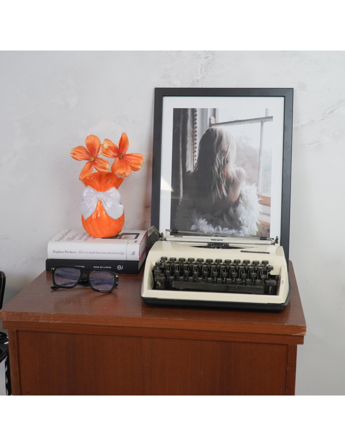 HousevitaminApportez une touche de charme et d'élégance à votre intérieur avec ce magnifique vase en céramique en forme de bouteille. Le design épuré et minimaliste prend une tournure ludique grâce au large nœud gracieusement noué autour du vase. Cette combinaison de simplicité et de détails saisissants fait de ce vase un véritable accroche-regard sur votre table, buffet ou rebord de fenêtre. Que vous choisissiez une seule fleur, un petit bouquet ou rien du tout, ce vase ajoute toujours une atmosphère chaleureuse et accueillante à n'importe quel espace. Parfait comme cadeau original ou pour vous faire plaisir ! Caractéristiques importantes : - Matériau : dolomite - Étanche - Forme : élégante en forme de bouteille - Décoration : large nœud autour pour un accent ludique - Dimensions : 11x10x16 cm Conseil de style : Associez le vase à des fleurs de couleur pastel pour un look romantique, ou optez pour des fleurs vives pour une touche joyeuse et frappante. Même sans fleurs, ce vase fait une déclaration élégante !